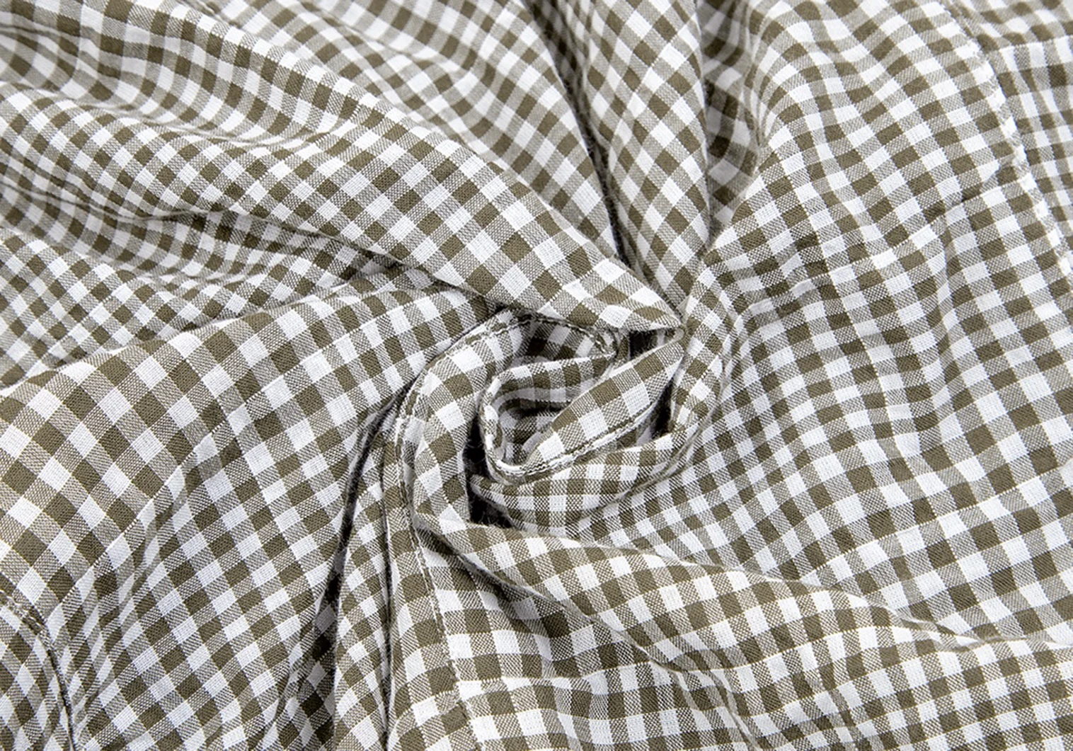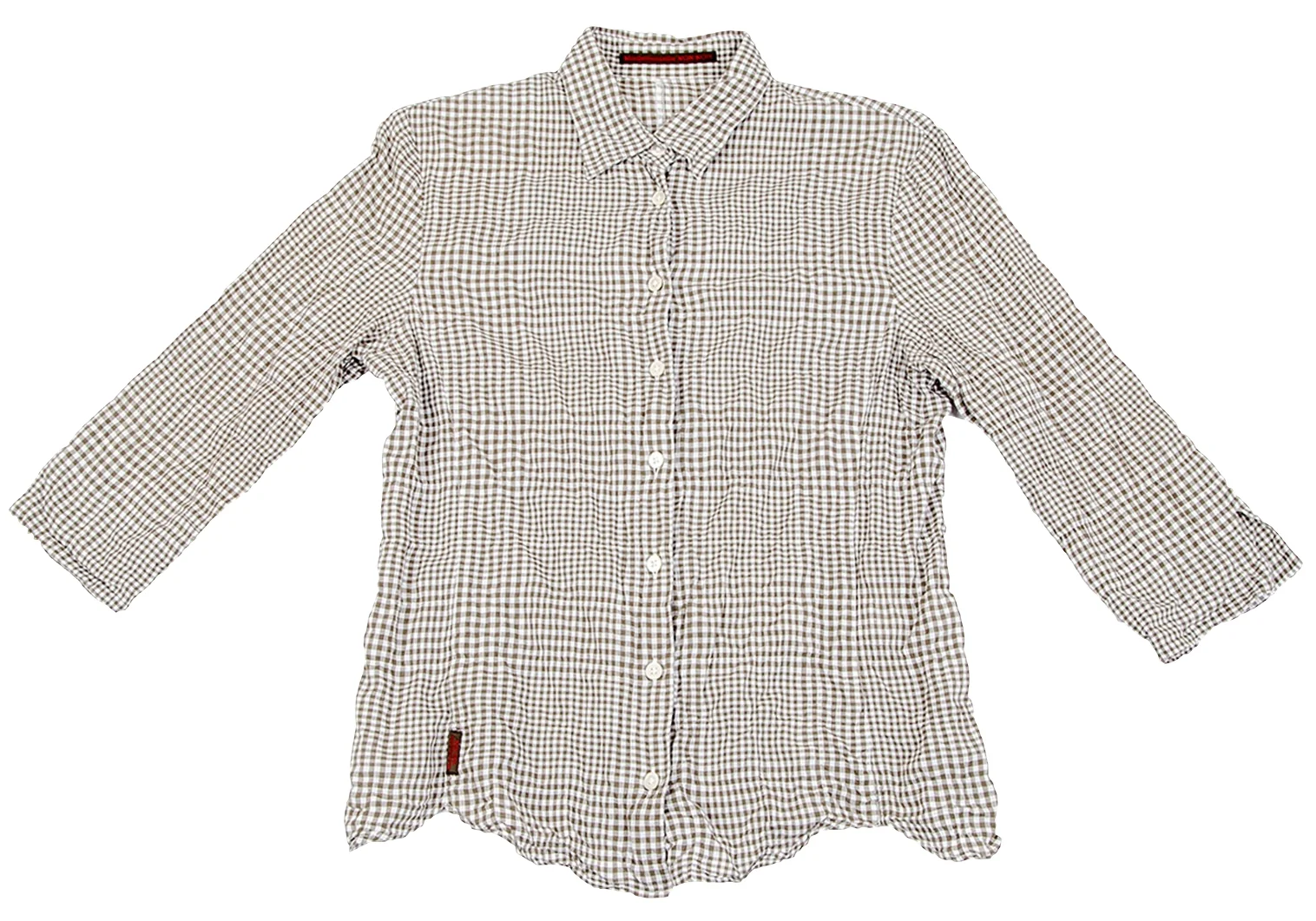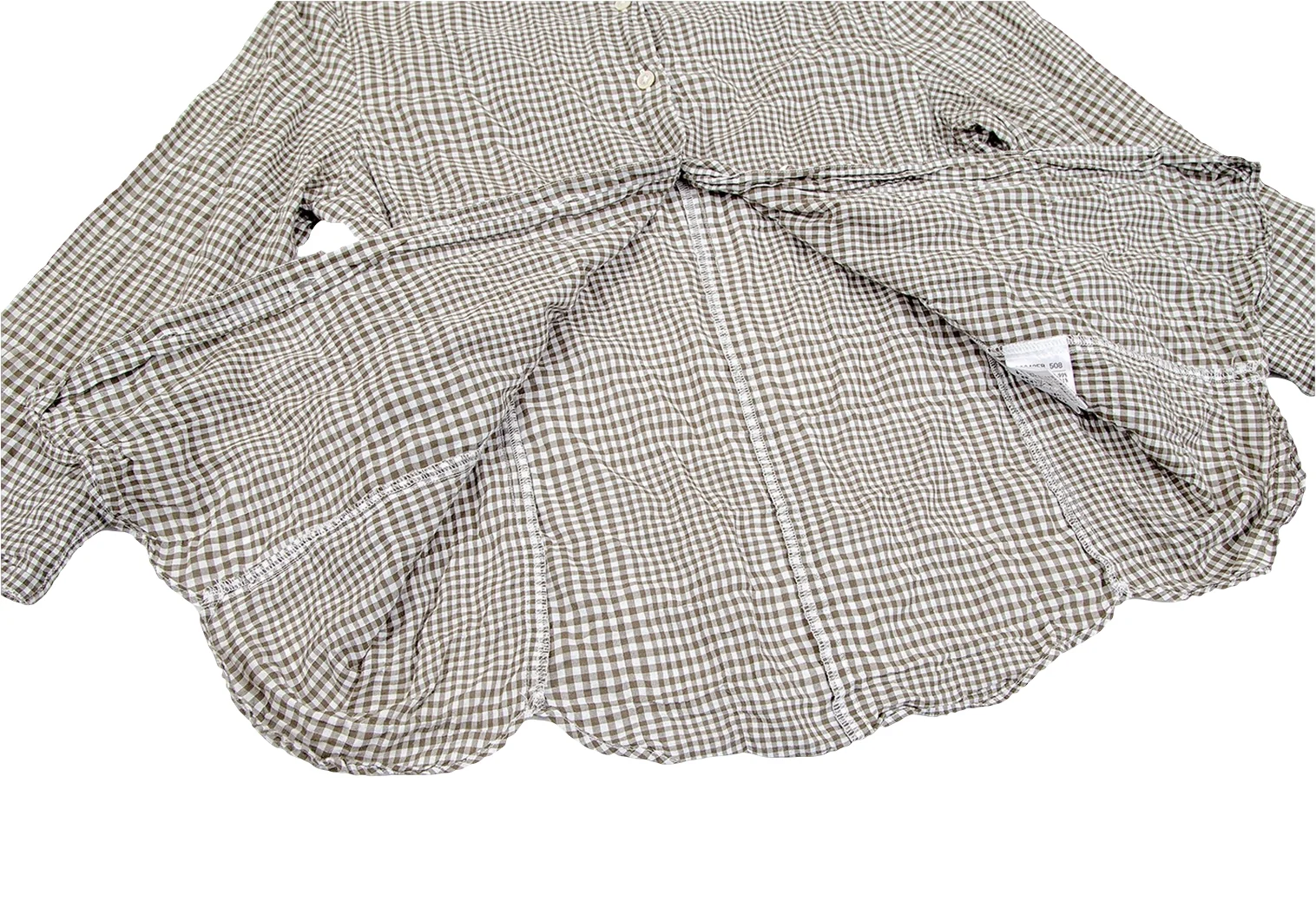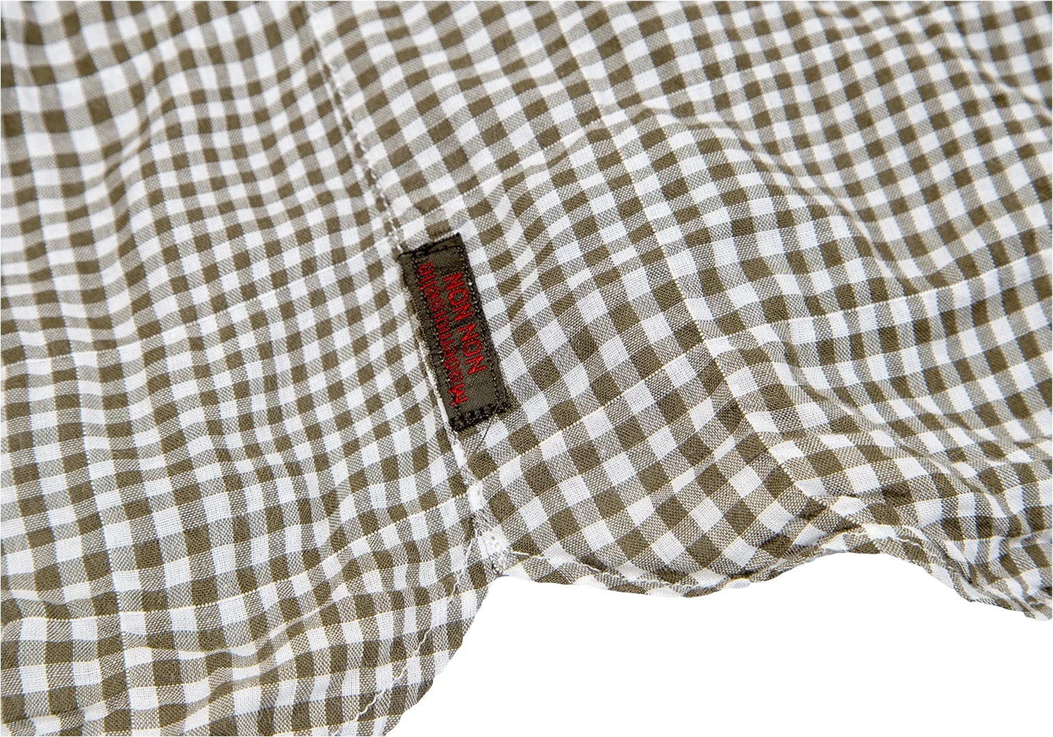マドモアゼルノンノンMademoiselle NON NON ギンガムチェック七分袖シャツ カーキ白38M