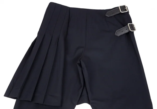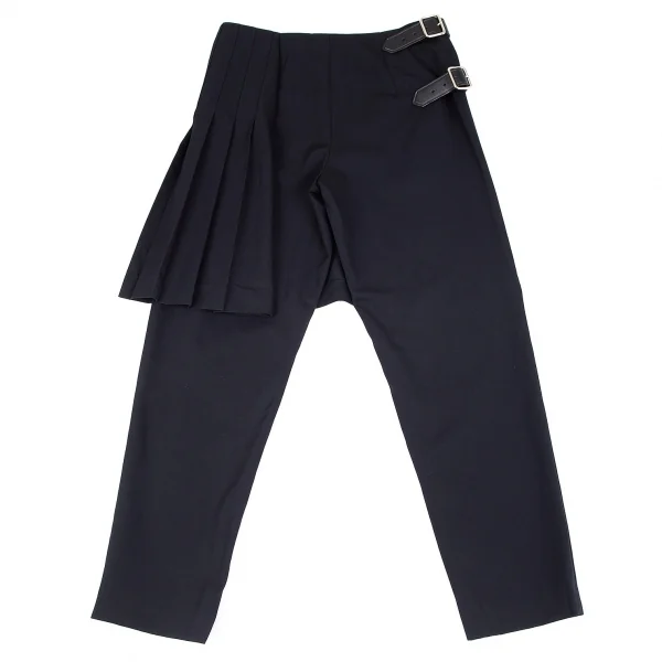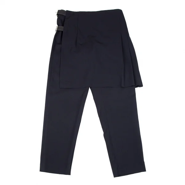 コムデギャルソンCOMME des GARCONS ウールギャバラップスカート付きテーパードパンツ 紺S