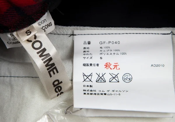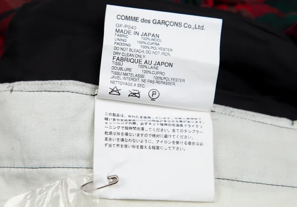 コムデギャルソンCOMME des GARCONS ウール中綿入りタータンチェックペンギンパンツ 赤緑S