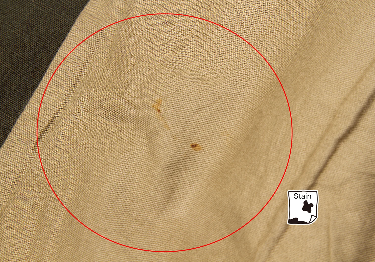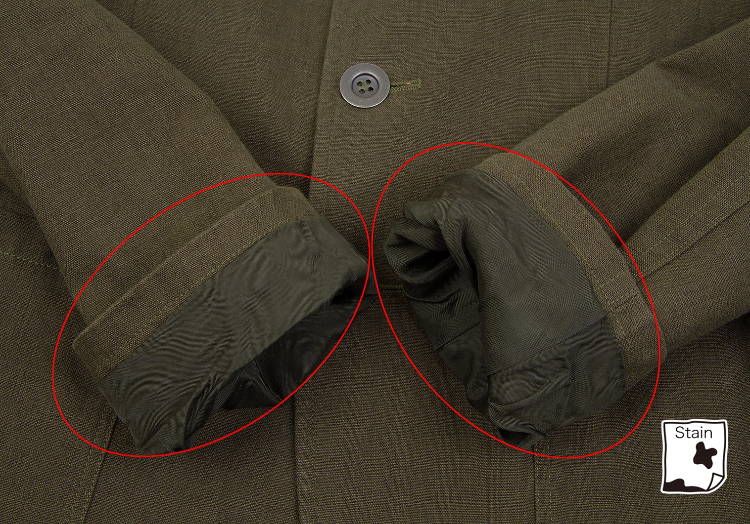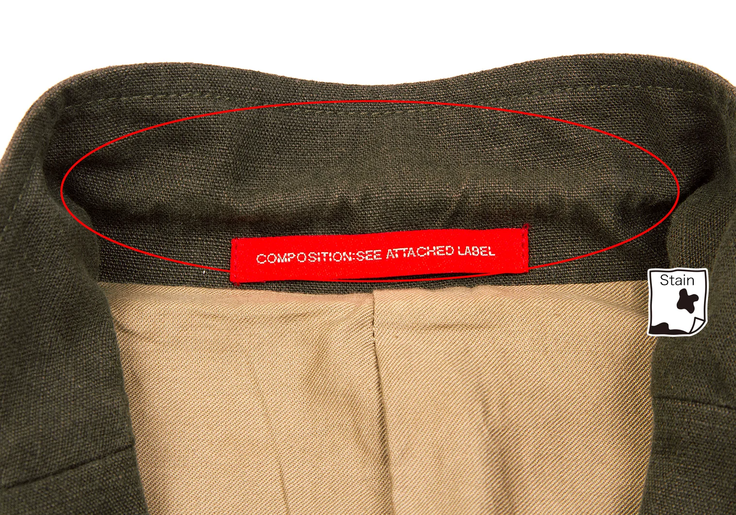 襟元に変色、袖裏、裏地に汚れがあります。(写真参照)その他目立ったシミ、汚れ、ほつれ等なくいい状態です。クリーニング済み