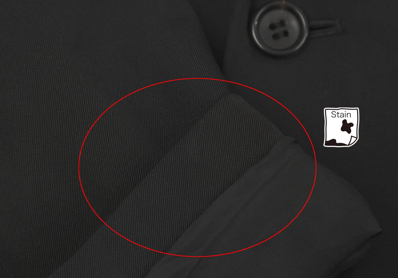 右袖裏に薄汚れがあります(画像参照)。その他目立ったシミ、汚れ、ほつれ等ありません。クリーニング済み