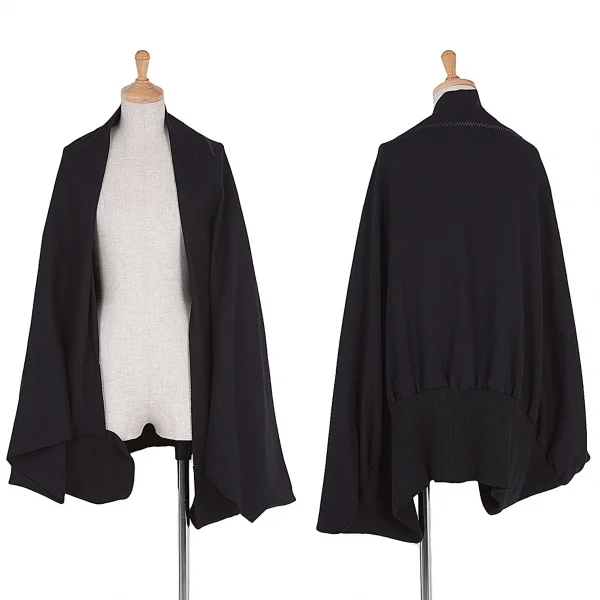 ワイズY's 裾リブデザインウールポンチョ 紺3