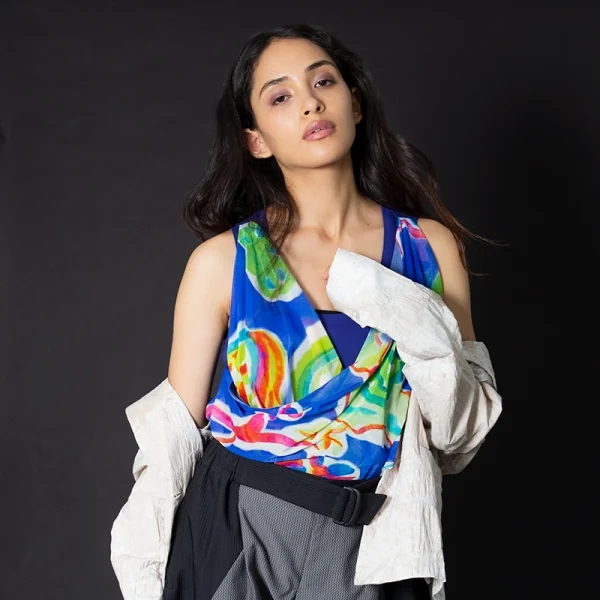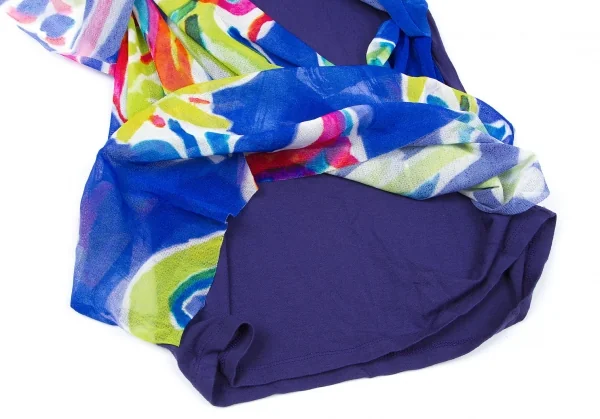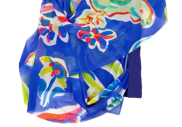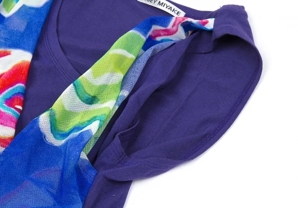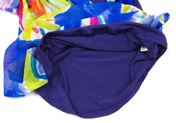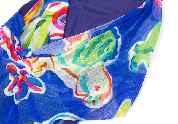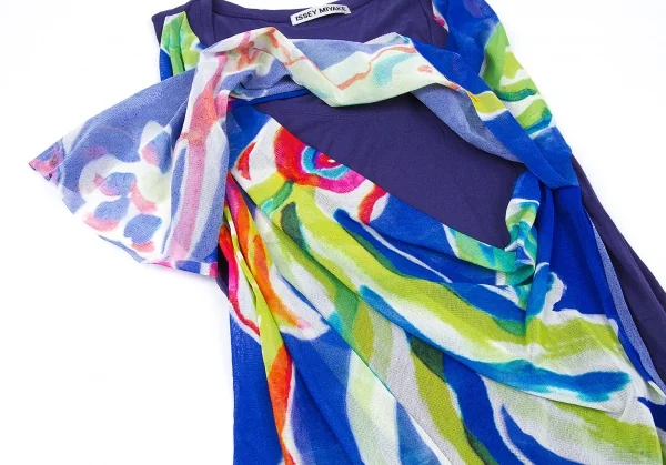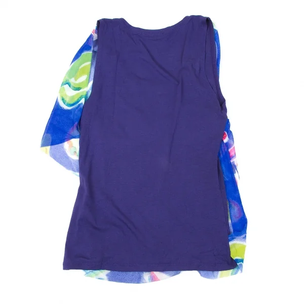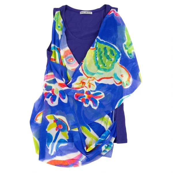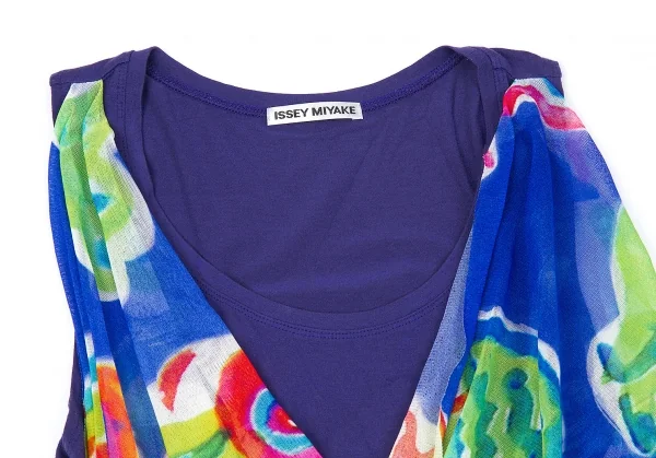イッセイミヤケISSEY MIYAKE フラワープリントパワーネットレイヤードタンクトップ 青マルチ3