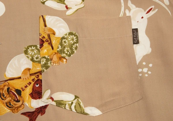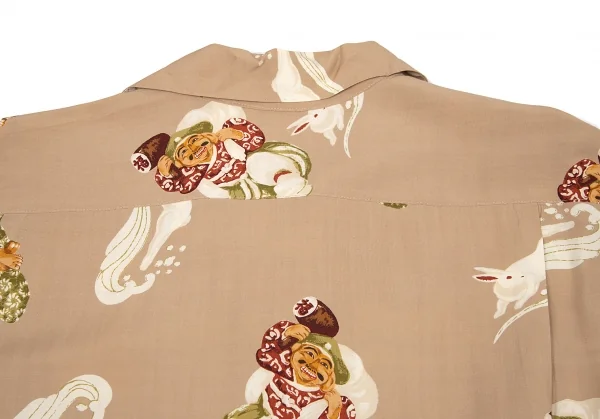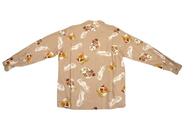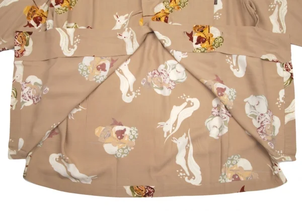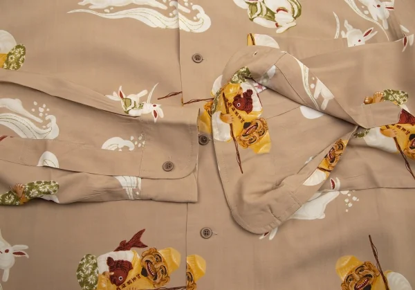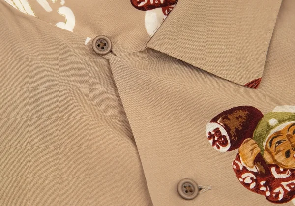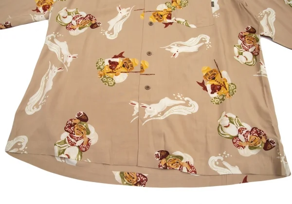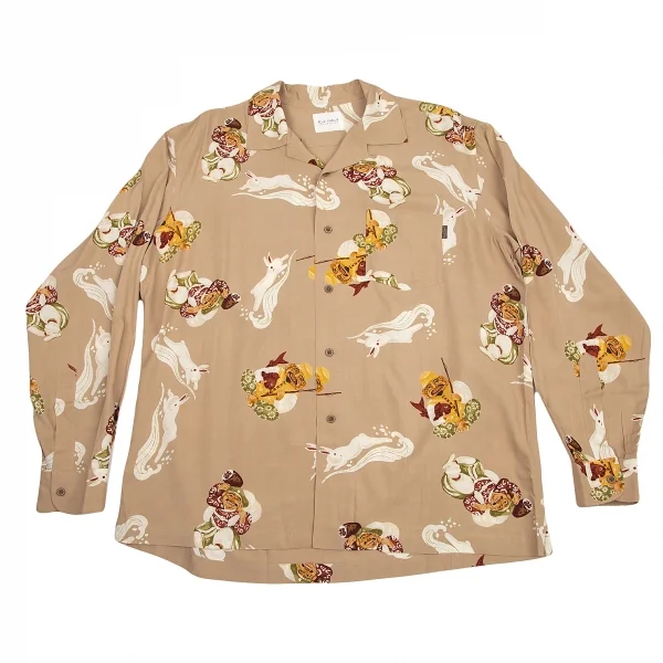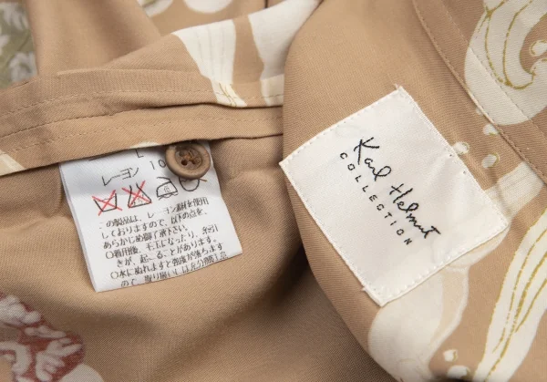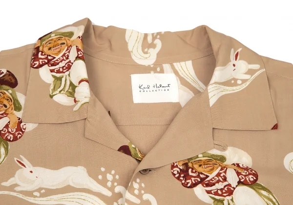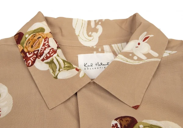 カールヘルムKarl Helmut レーヨンえびすプリントシャツ モカ他L
