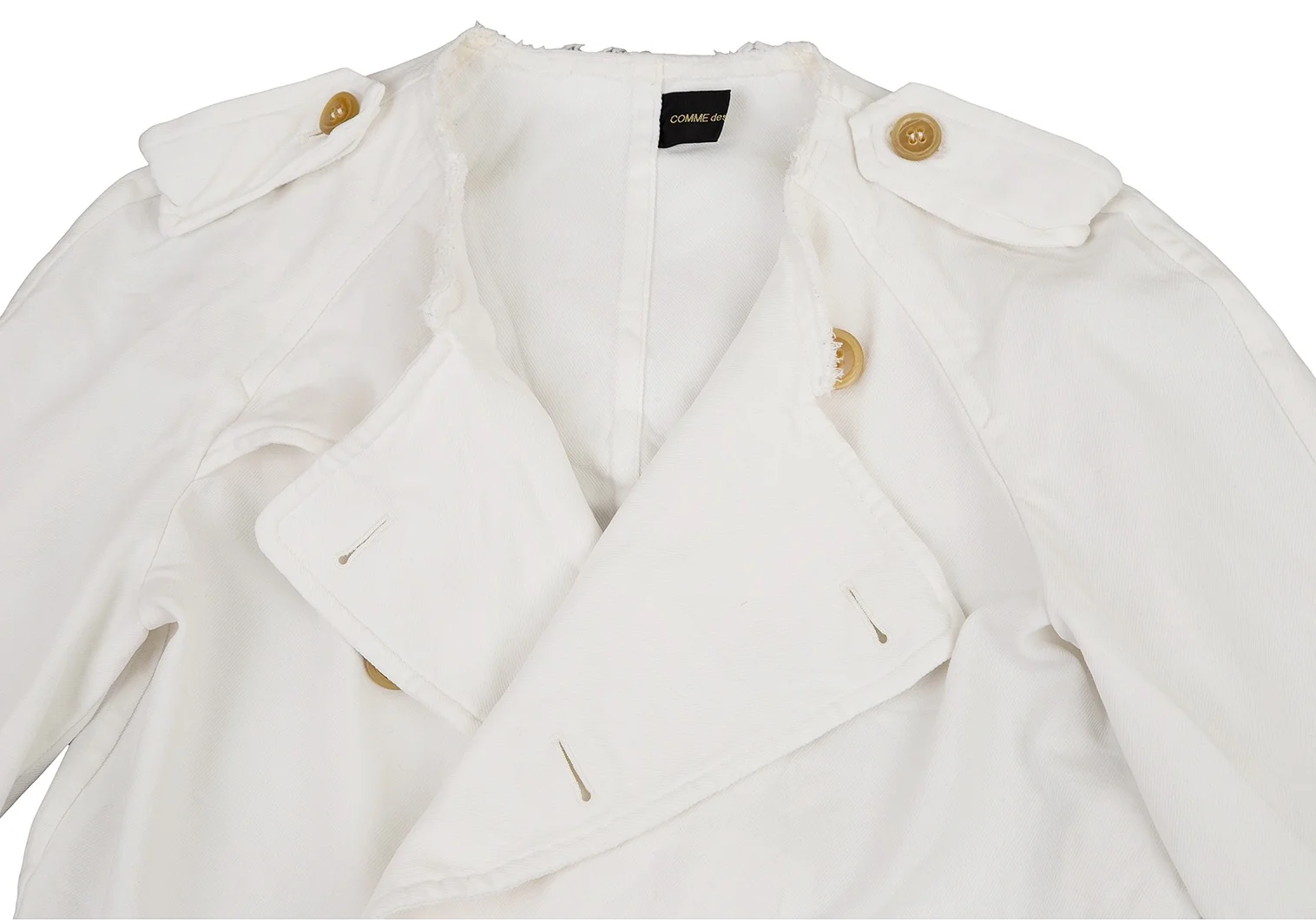 コムデギャルソンCOMME des GARCONS エステルカットオフデザインショートトレンチコート 白M位