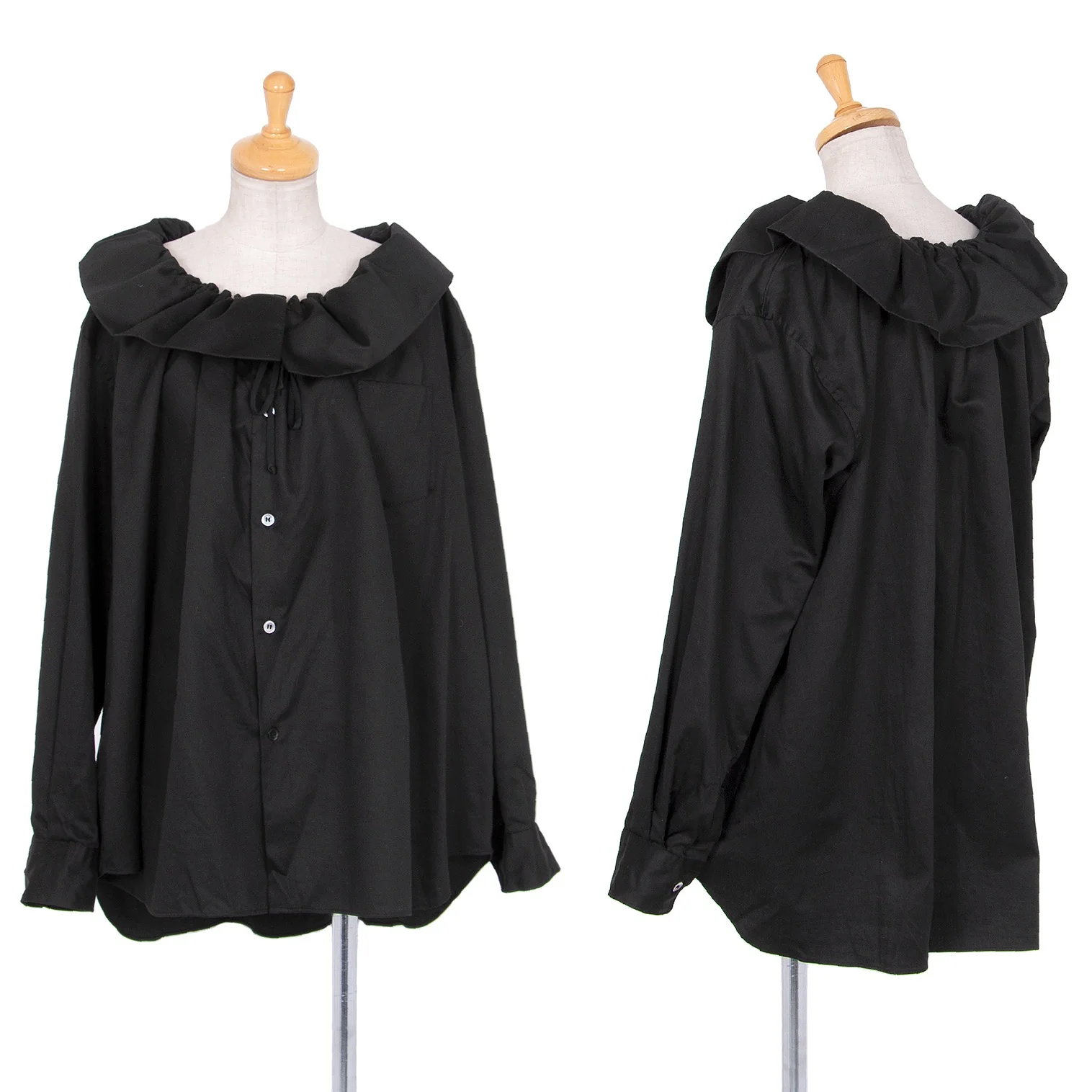 コムデギャルソンCOMME des GARCONS コットンワイドギャザーネックビッグシルエットシャツ 黒S