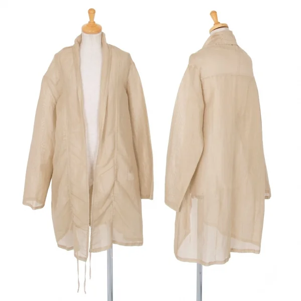 プルドゥpour deux 麻混ドローストリングブラウスジャケット モカベージュ1