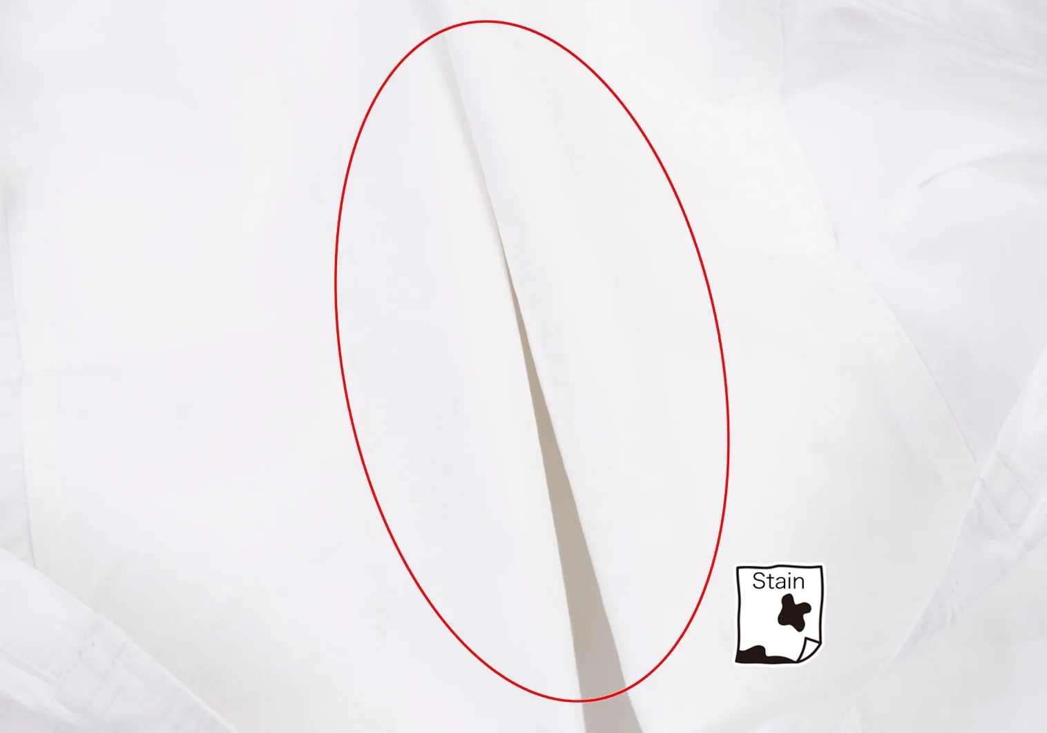 透け感のある生地です。襟元・裾に点シミ、首裏・袖裏に薄汚れがあります(画像参照)。その他目立ったシミ、汚れ、ほつれ等ありません。クリーニング済み