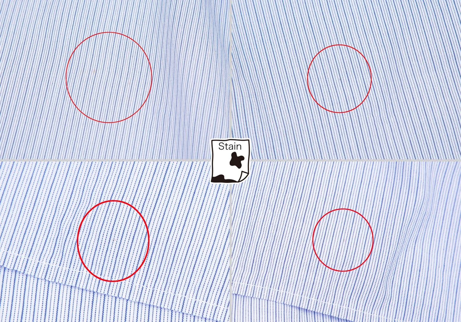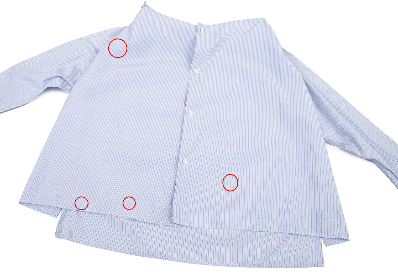 首裏に汚れ、前身頃にシミが数カ所あります(画像参照)。その他目立ったシミ、汚れ、ほつれ等ありません。クリーニング済み