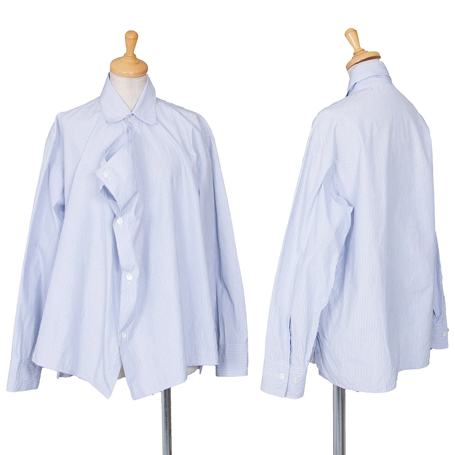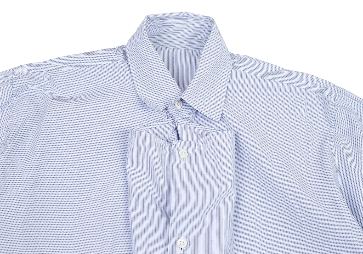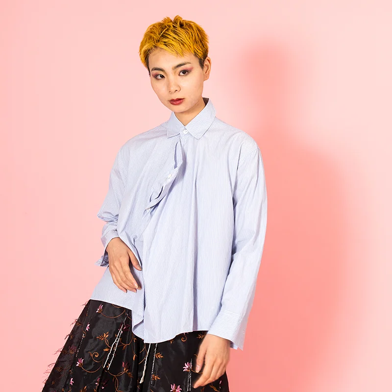 ワイズY's ストライプ前立ドレープデザインシャツ 青白4