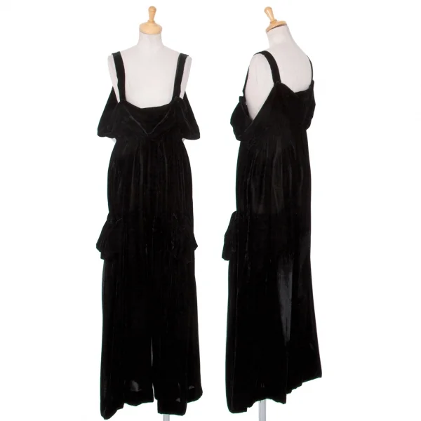 ヨウジヤマモト ファムYohji Yamamoto FEMME ベロアシャーリングギャザーサロペット 黒2