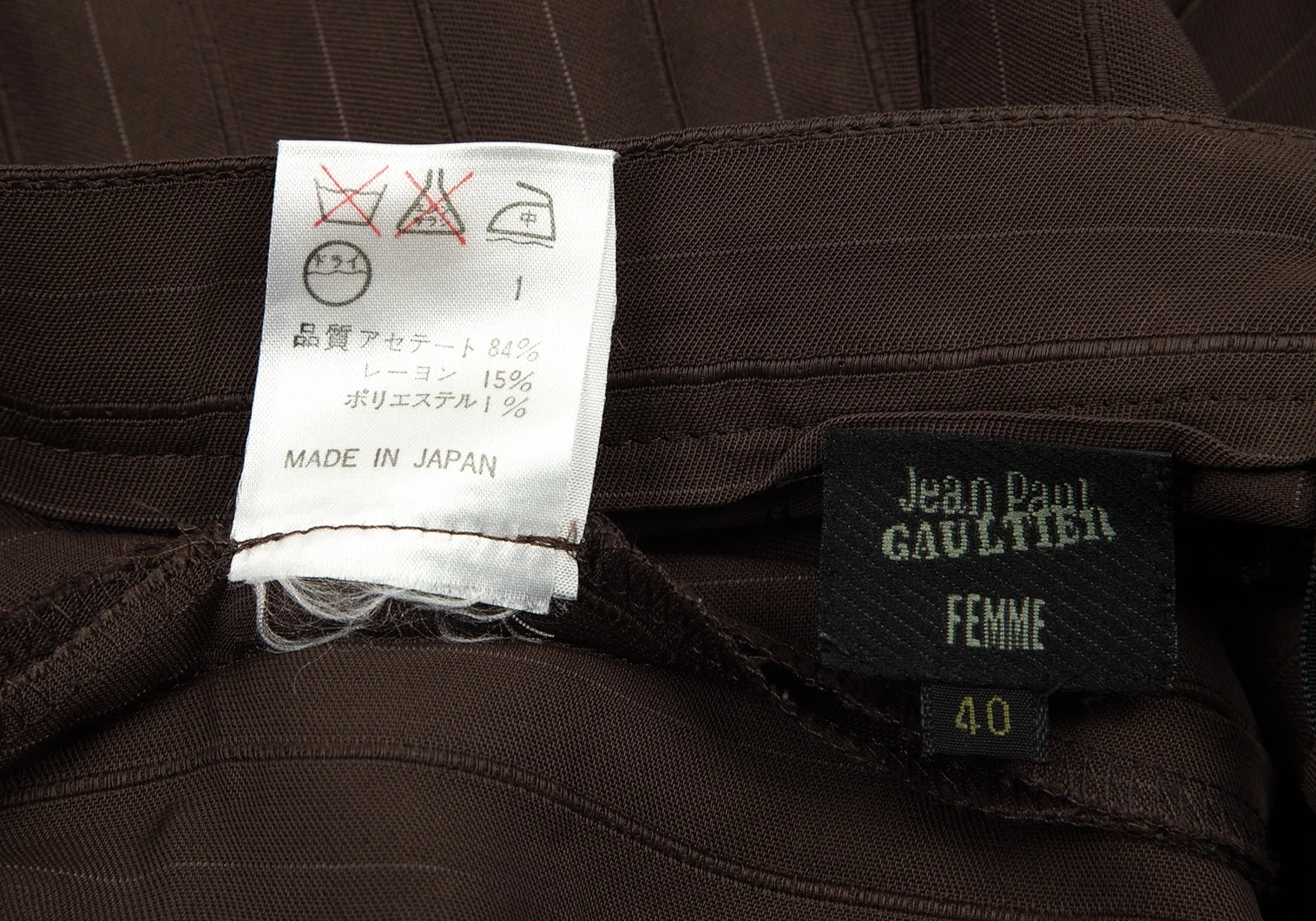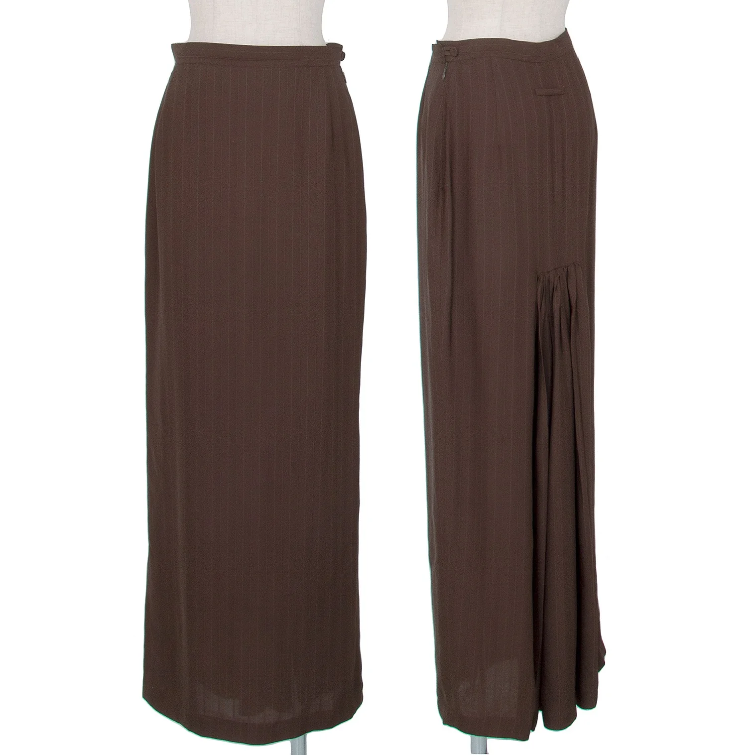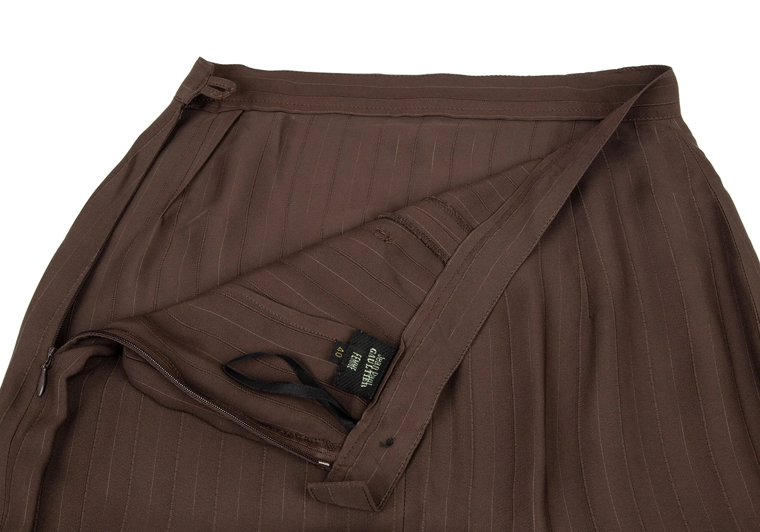 ジャンポールゴルチエ ファムJean Paul GAULTIER FEMME バックギャザーストライプロングスカート モカ40