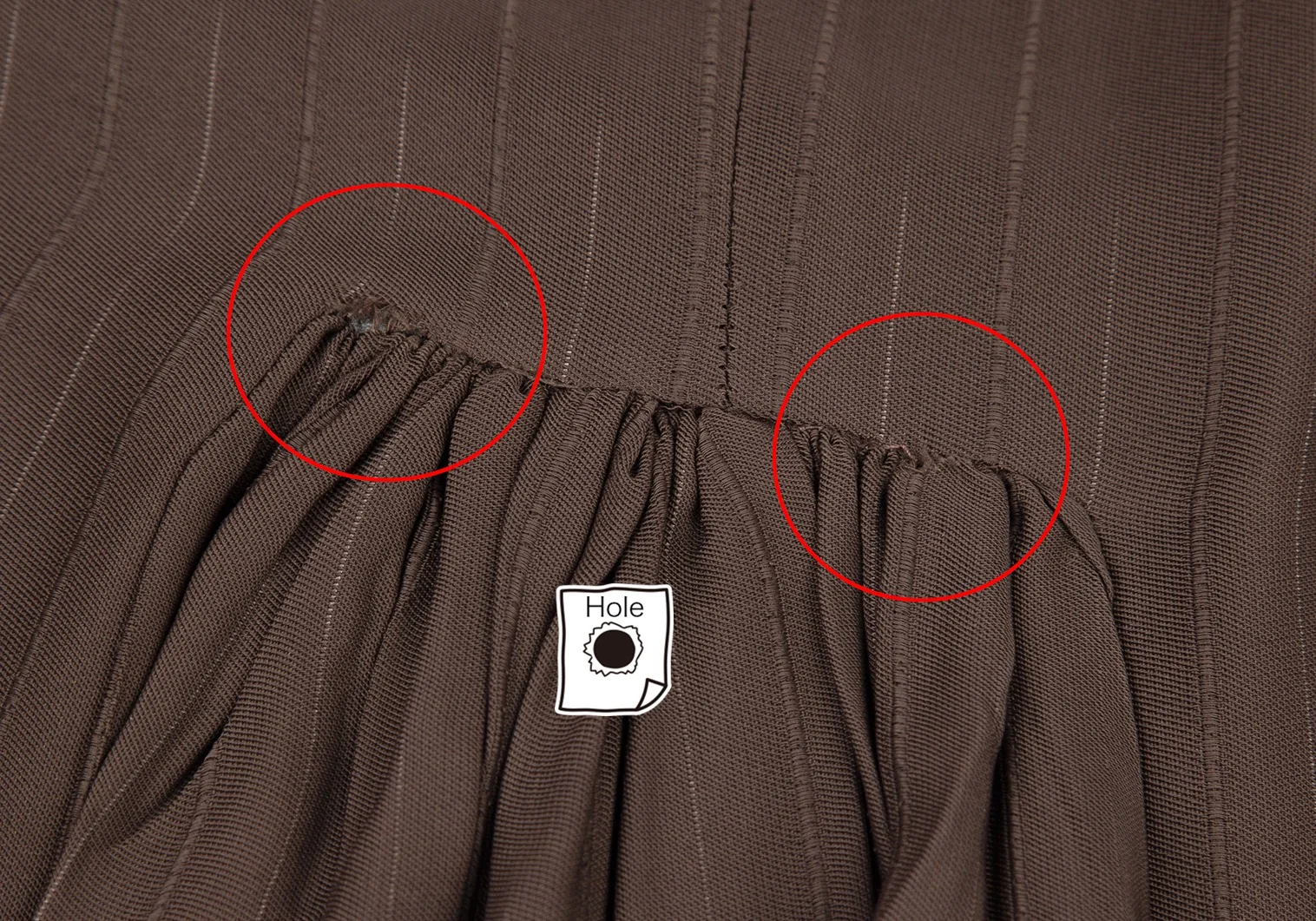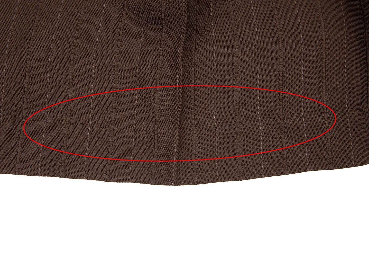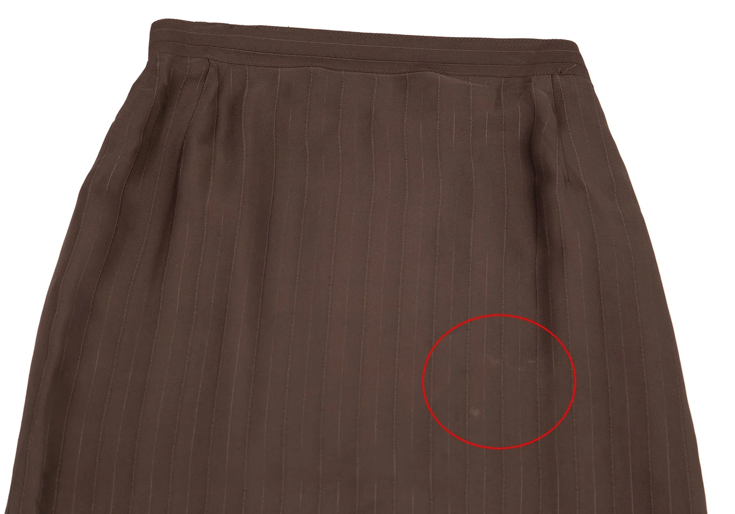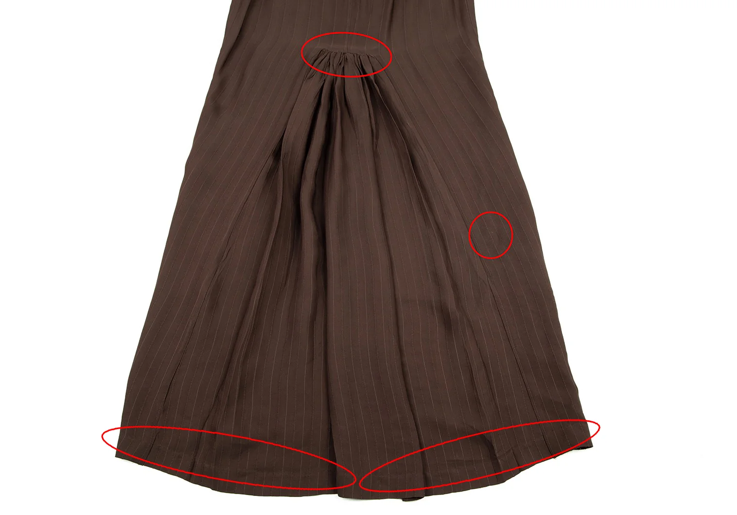前身頃・後ろ裾にアタリ、裾にステッチの補修、後ろギャザー部分に破れがあります(画像参照)。その他目立ったシミ、汚れ、ほつれ等ありません。クリーニング済み