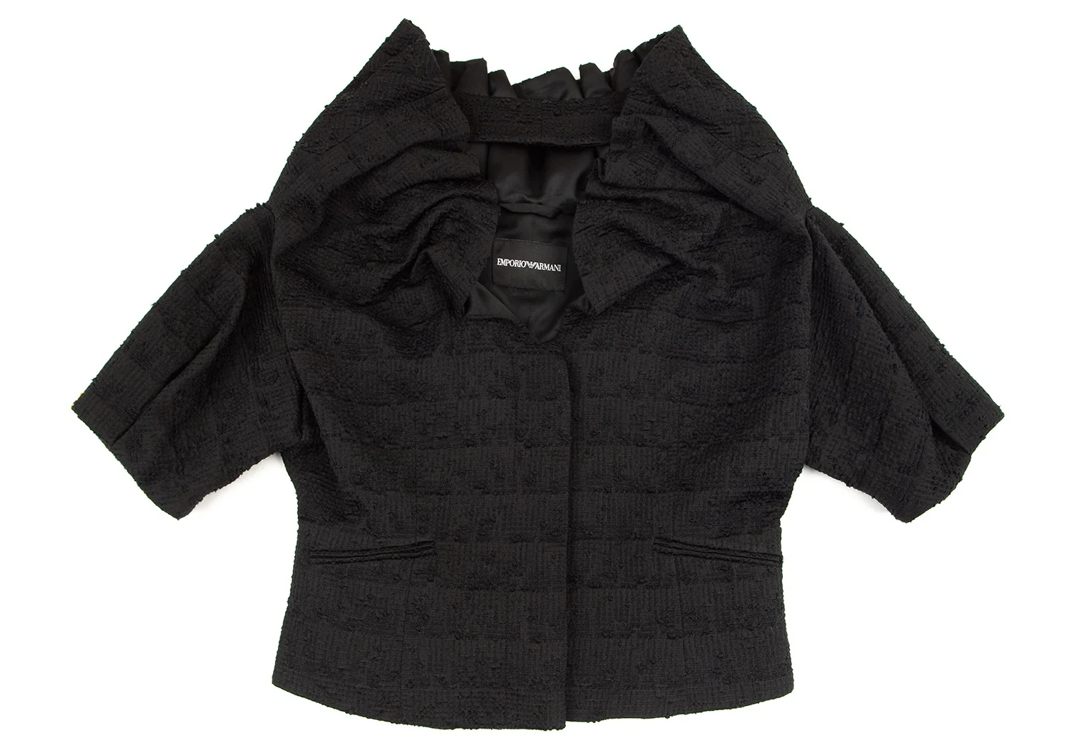 エンポリオ アルマーニEMPORIO ARMANI 半袖フリルデザインジャケット 黒42