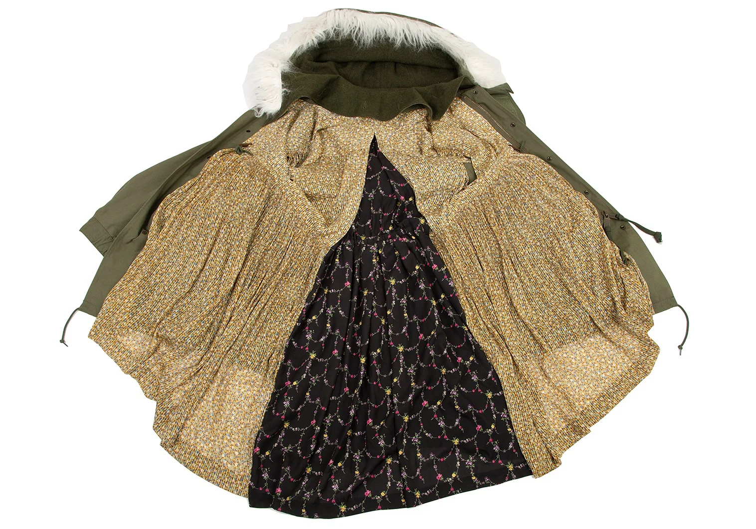 コート 本体 綿70% ナイロン30% フード部分 毛90% ナイロン10% フェイクファー パイル アクリル系70% アクリル30% 基布 ポリエステル100% ワンピース 表地 ポリエステル100% 裏地 キュプラ100%