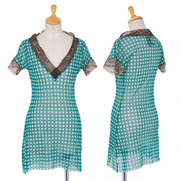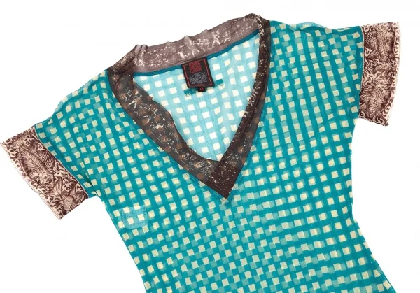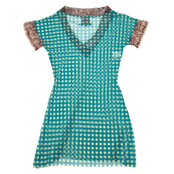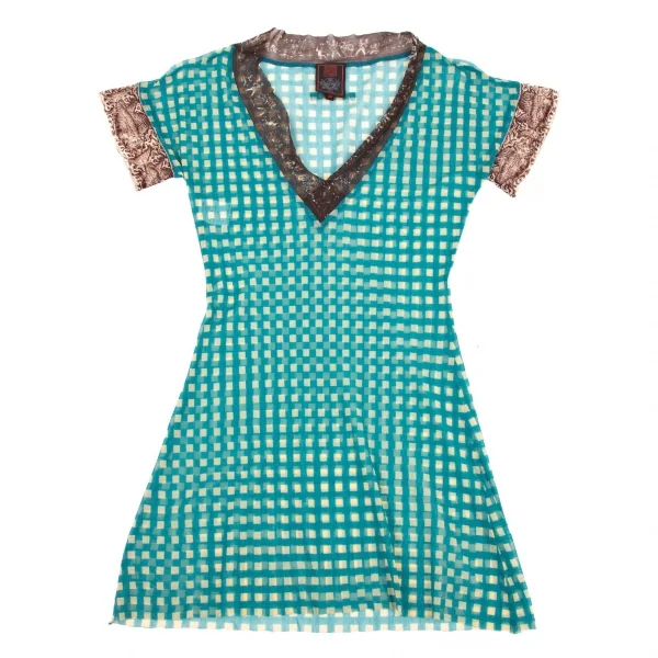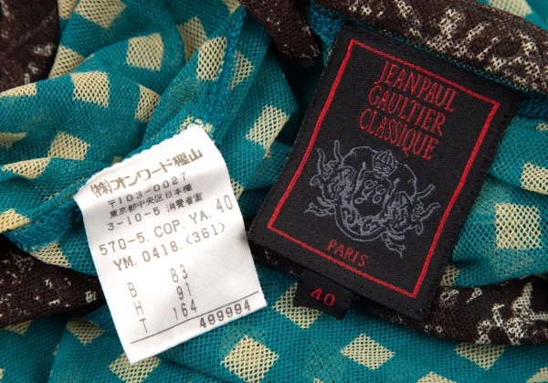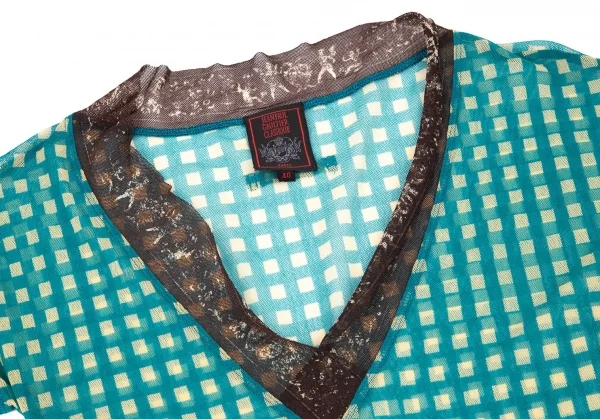 ジャンポールゴルチエ クラシックJean Paul GAULTIER CLASSIQUE 切替チェックパワーネットチュニック ターコイズベージュ40