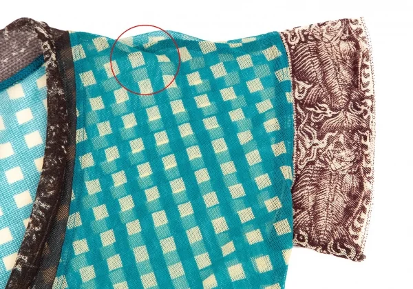 透け感のある生地です。左肩に穴があります(画像参照)。その他目立ったシミ、汚れ、ほつれ等なくいい状態です。クリーニング済み
