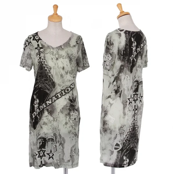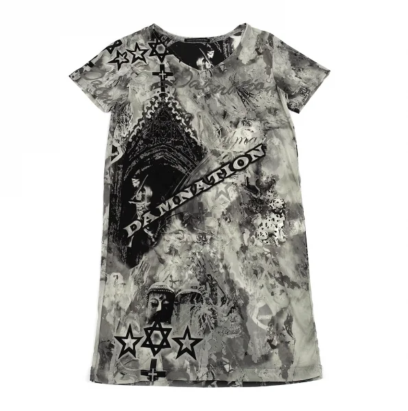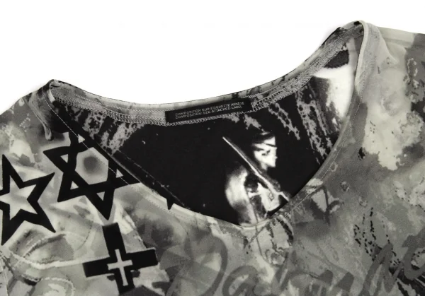 ヨウジヤマモト ファムYohji Yamamoto FEMME クレイジーパターンプリントシースルーTシャツ グレー2