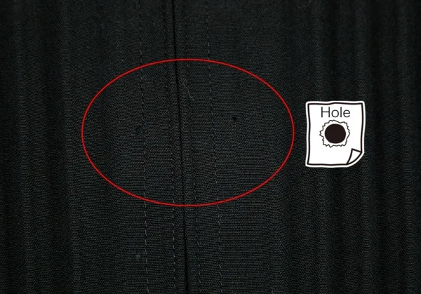 首回り・袖先・袖裏に汚れ、前身頃に穴が数カ所あります(画像参照)。その他目立ったシミ、汚れ、ほつれ等ありません。クリーニング済み