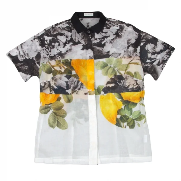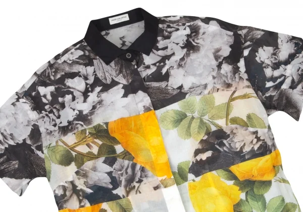 ドリスヴァンノッテンDRIES VAN NOTEN フラワーコラージュプリントコットンシャツ 白黒黄36