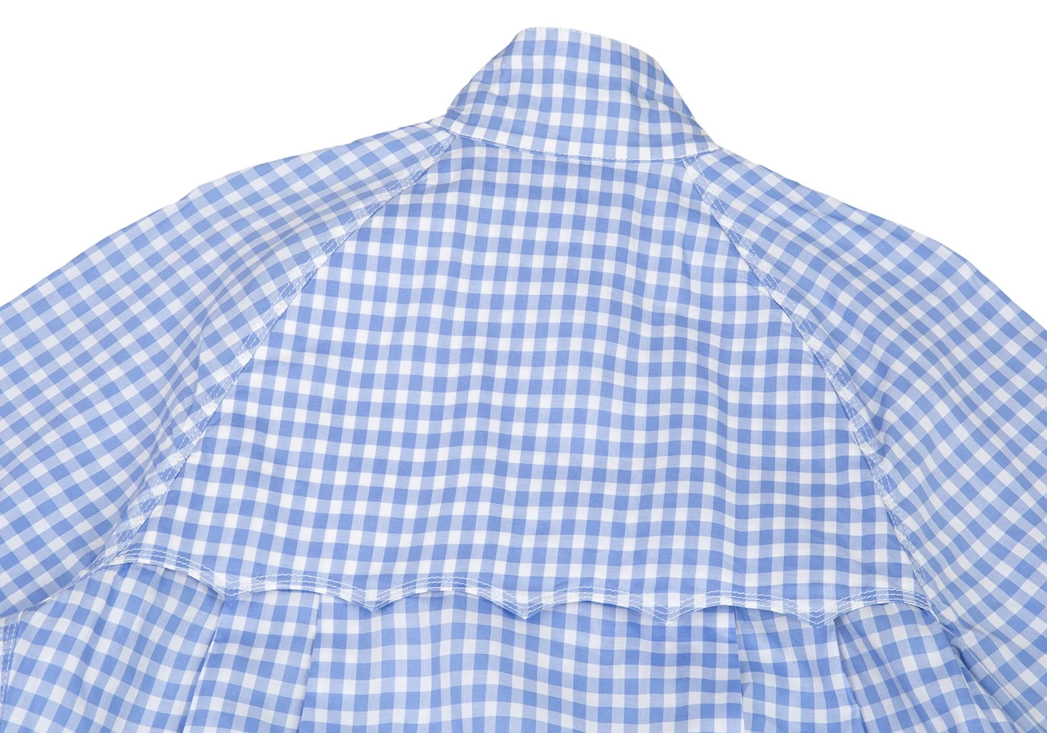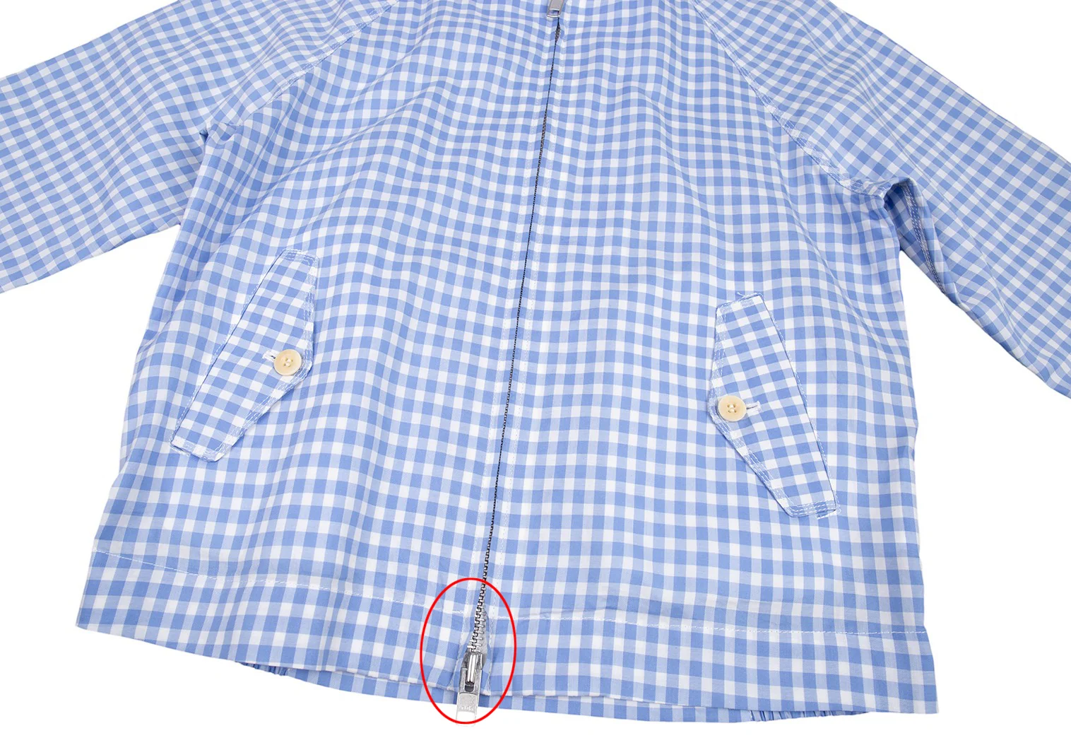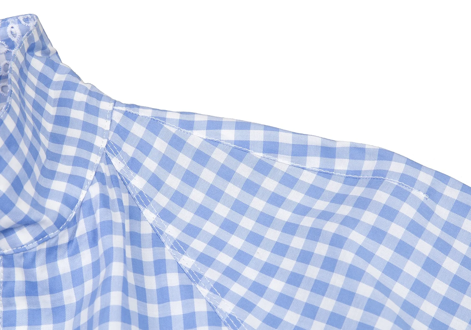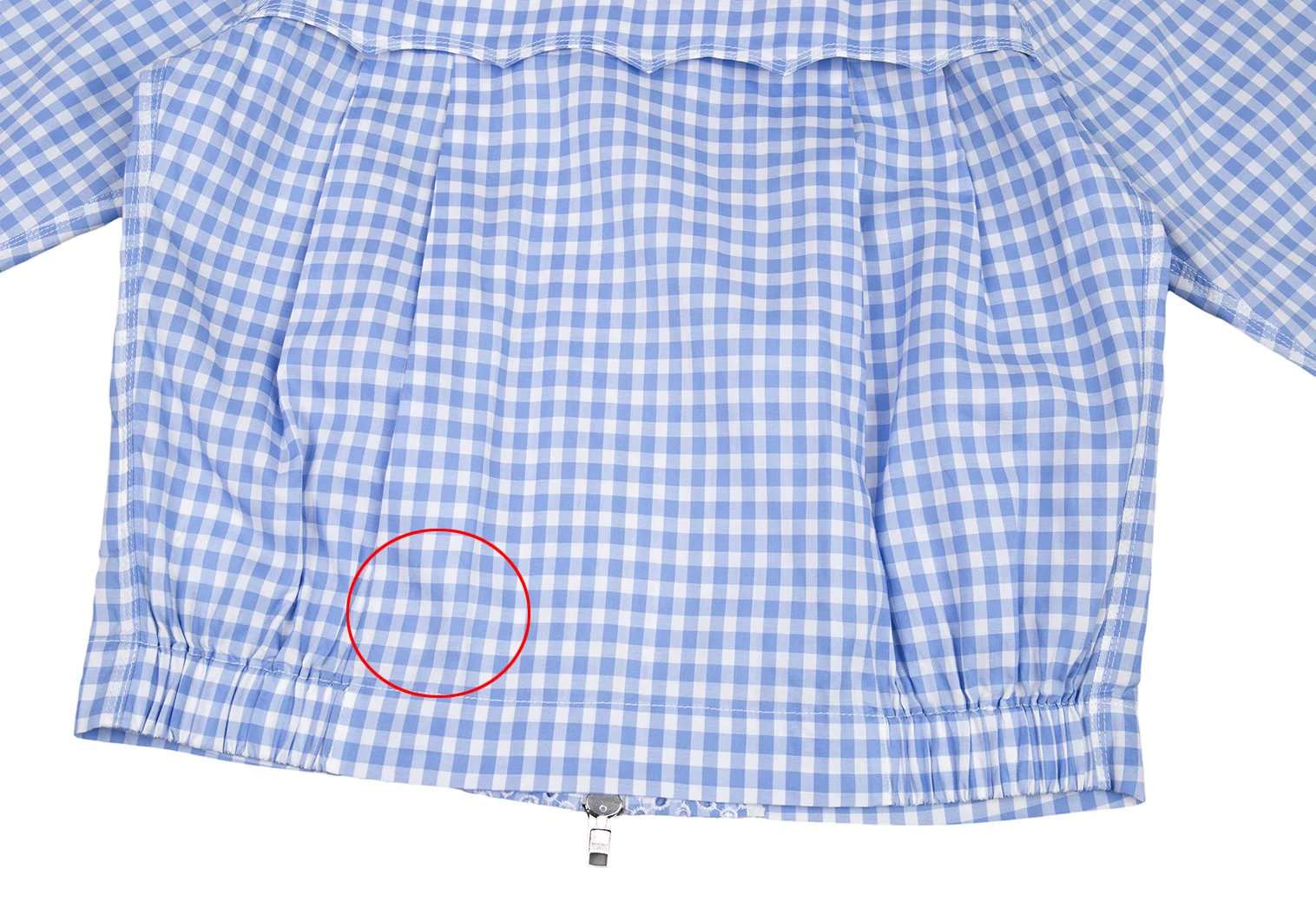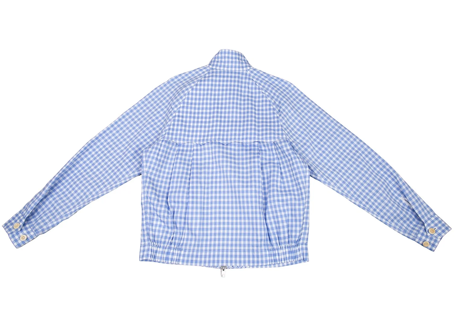 サカイSacai 襟エンブロイダリーレースギンガムチェックスイングトップジャケット 白水色2