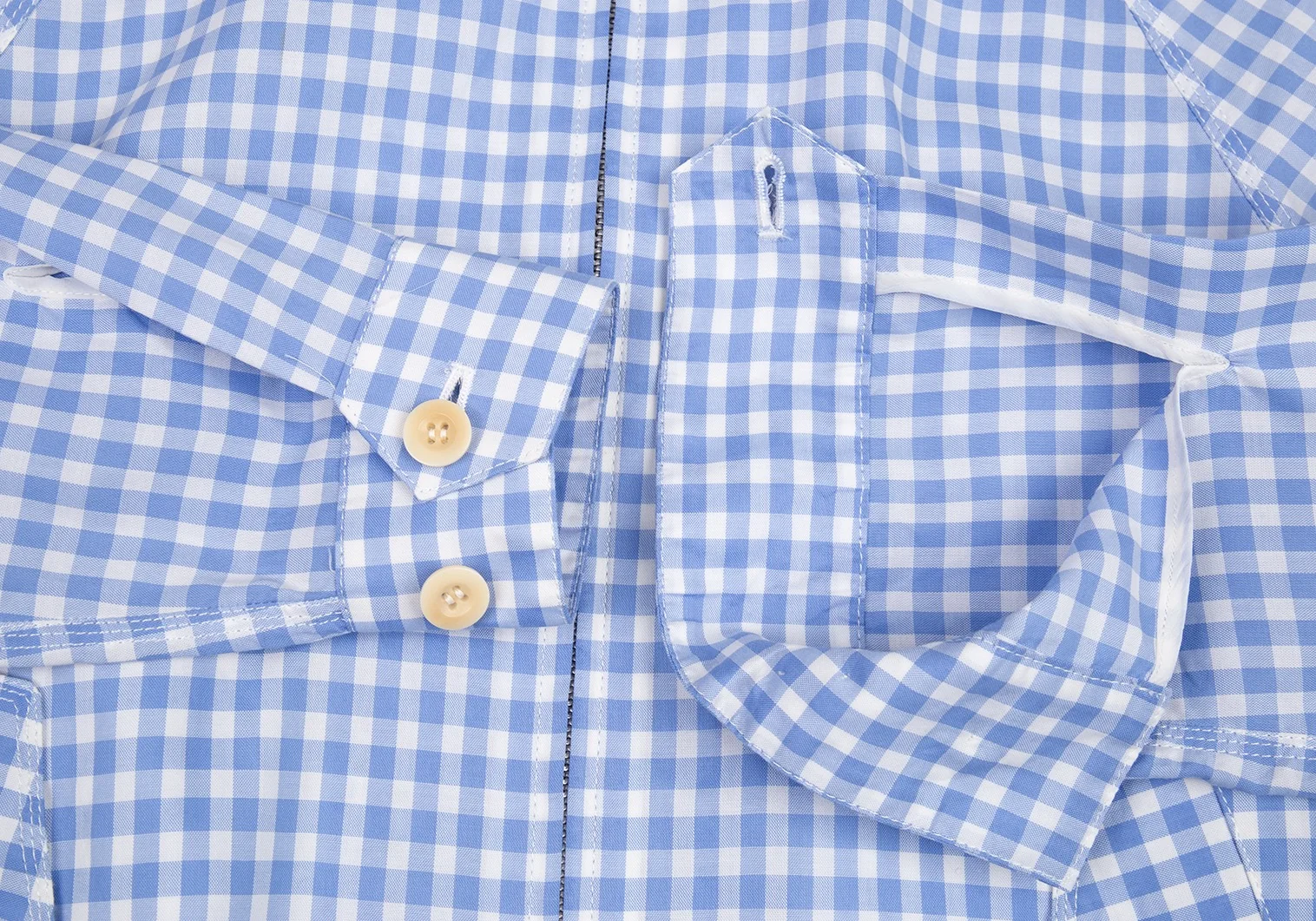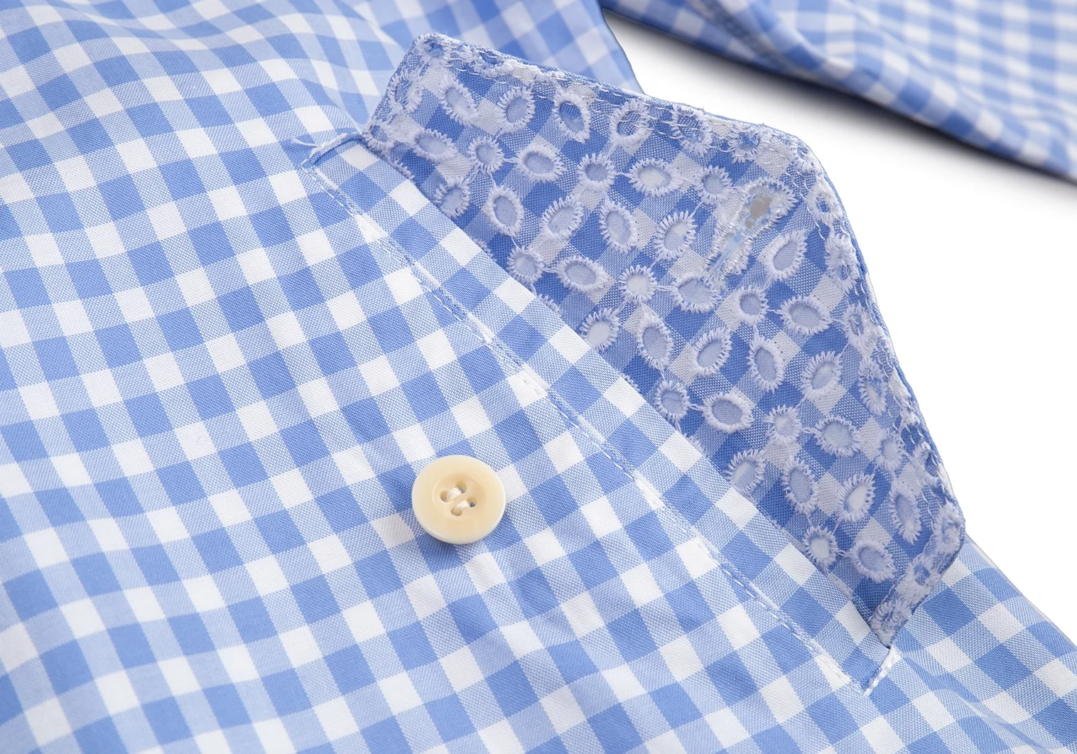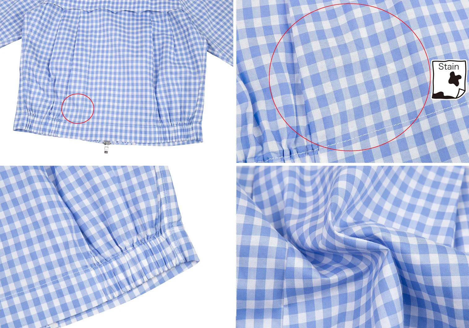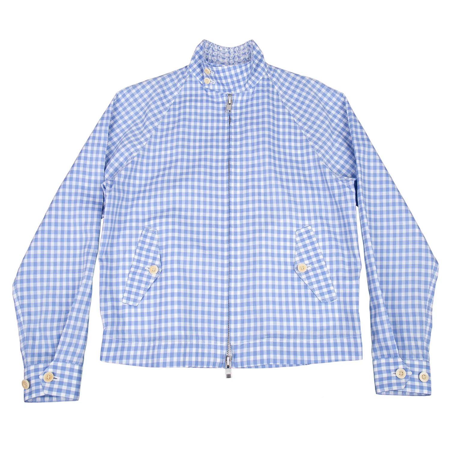 サカイSacai 襟エンブロイダリーレースギンガムチェックスイングトップジャケット 白水色2