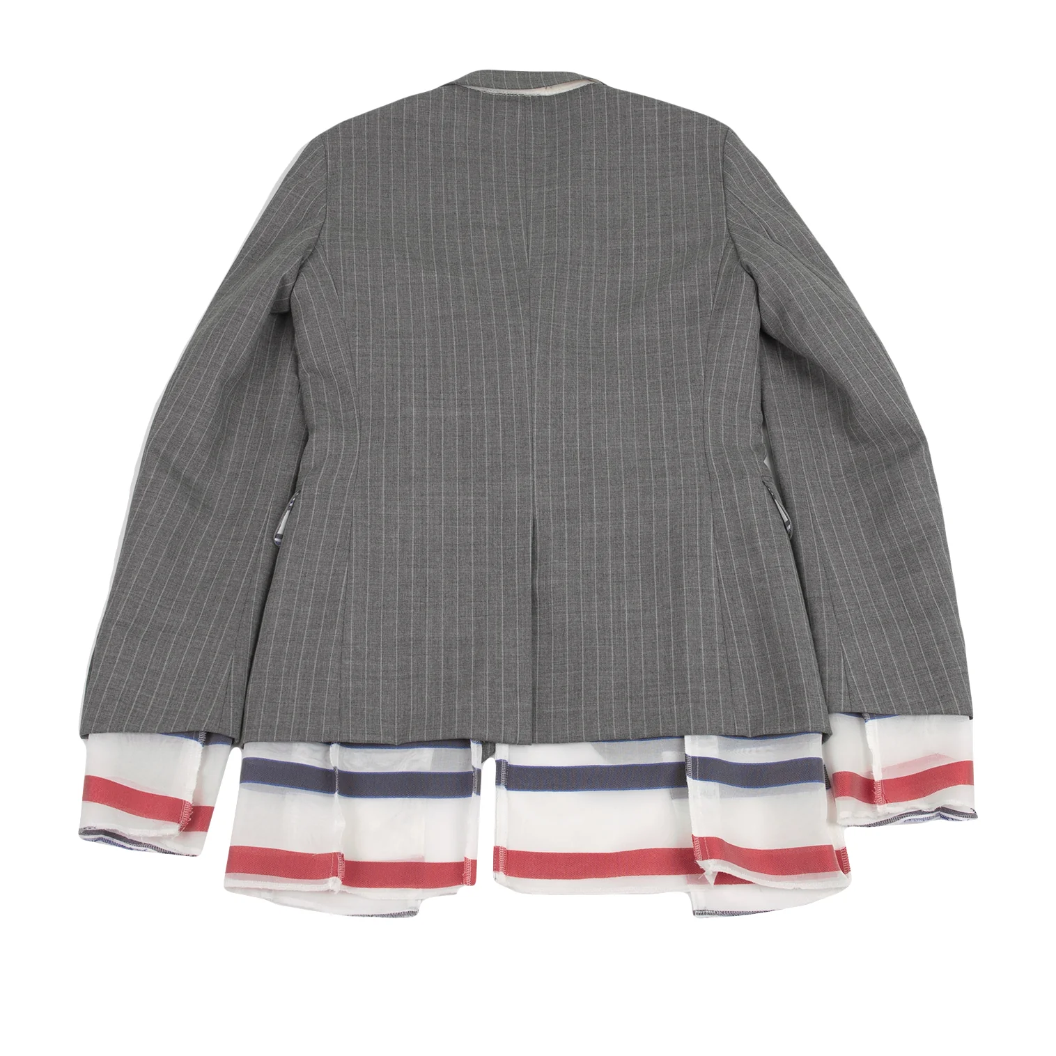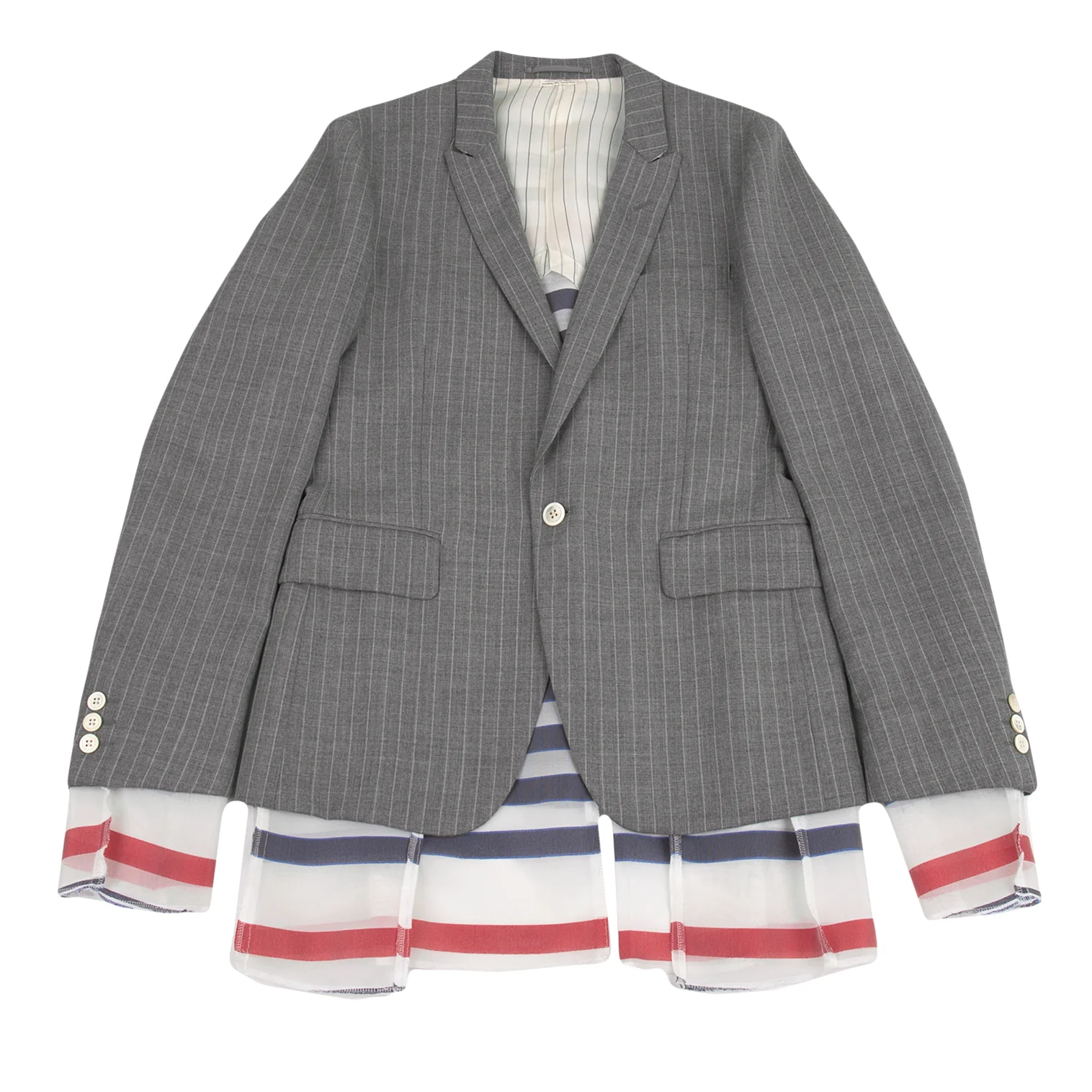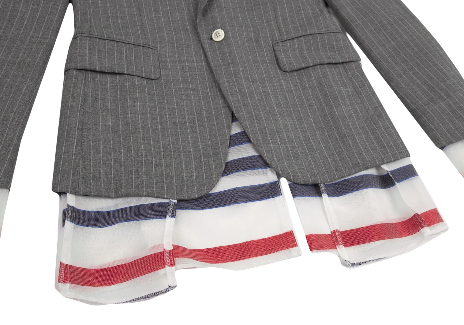 コムデギャルソン オムプリュスCOMME des GARCONS HOMME PLUS ボーダーメッシュレイヤードストライプジャケット グレーS