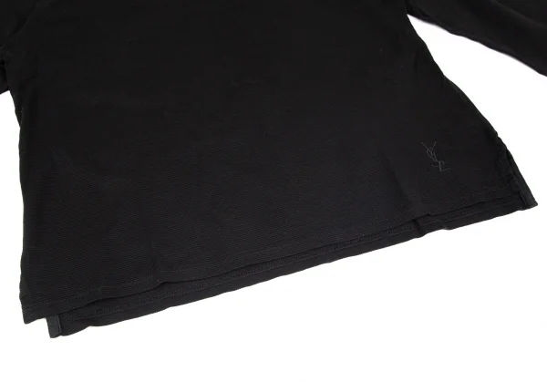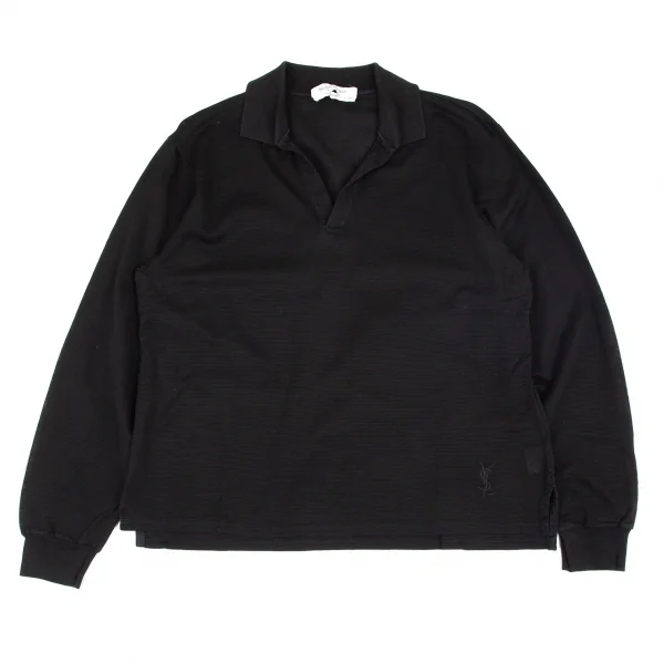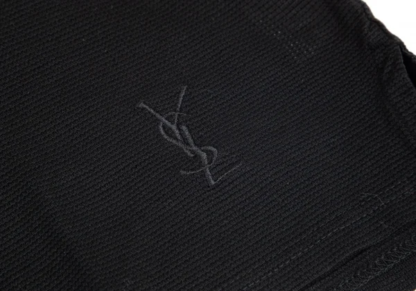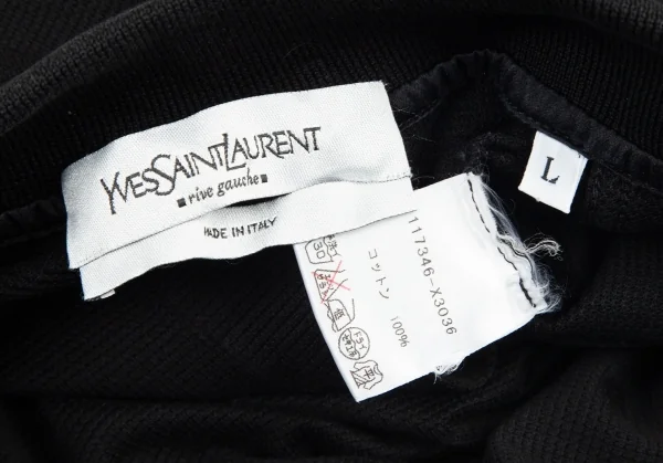 イヴサンローラン リヴゴーシュYves Saint Laurent rive gauche ワンポイントロゴ刺繍メッシュポロニット 黒L