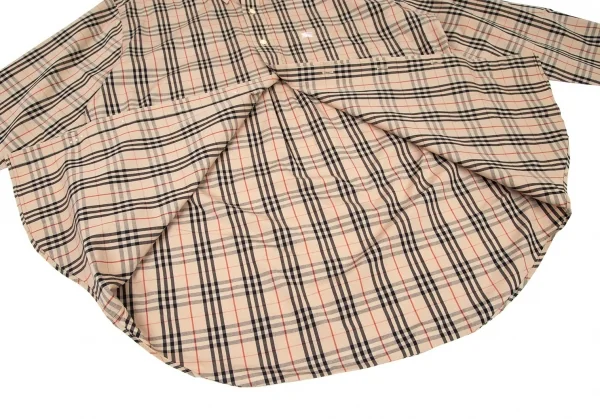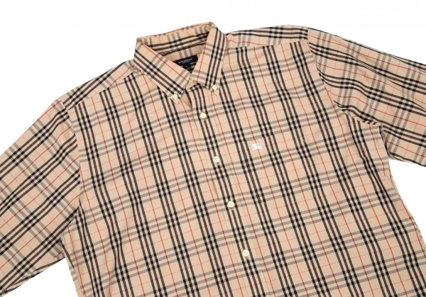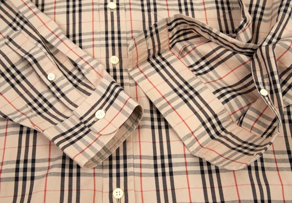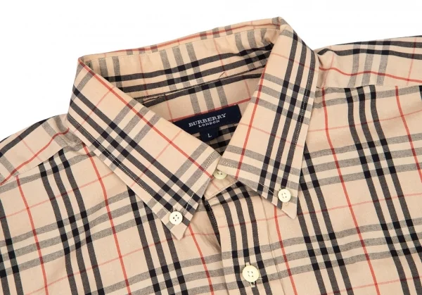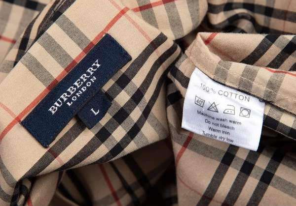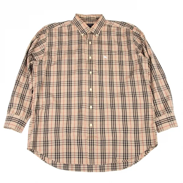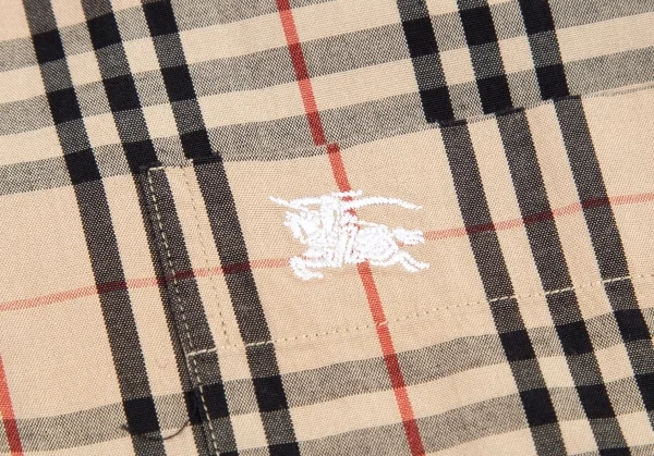 バーバリー ロンドンBURBERRY LONDON ワンポイントロゴ刺繍ノバチェックシャツ 茶L