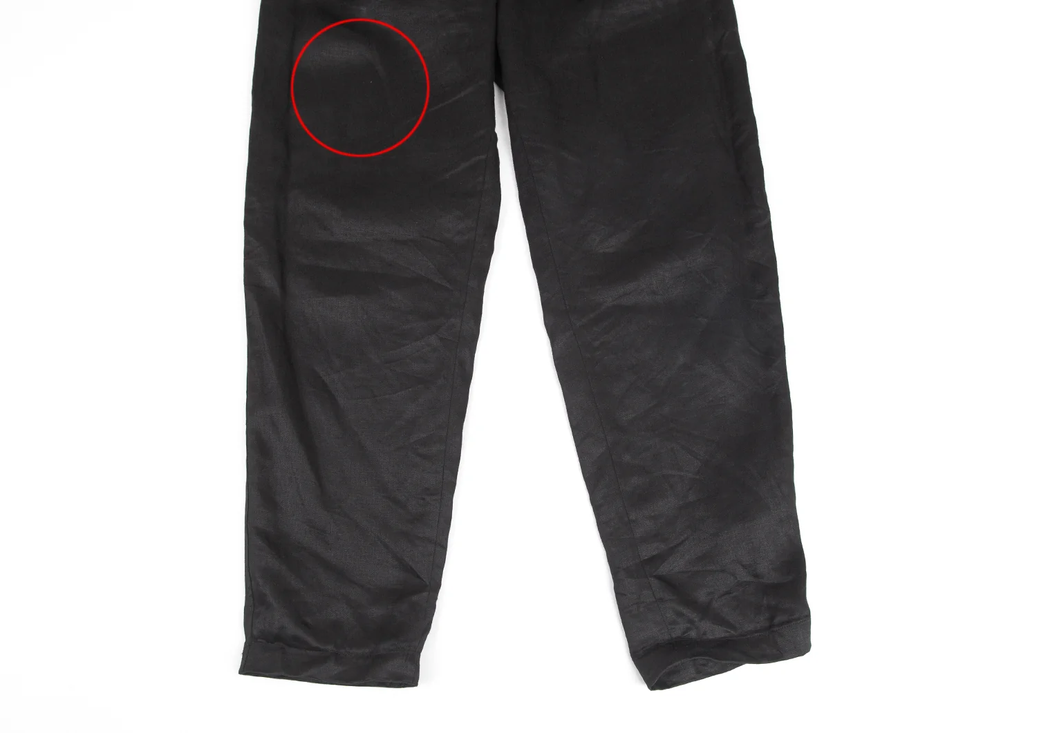 生地の特性上、ネップがあります。ウエストゴムですが、紐でも調節可能です。右足に色褪せがあります(写真参照)。その他に目立ったシミ、汚れ、ほつれ等なくいい状態です。クリーニング済み