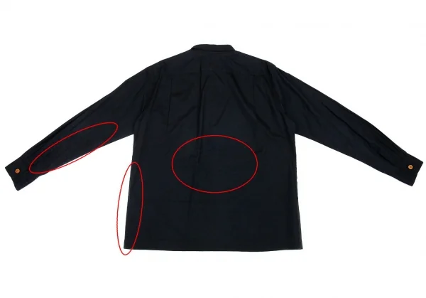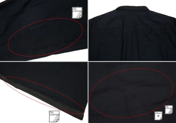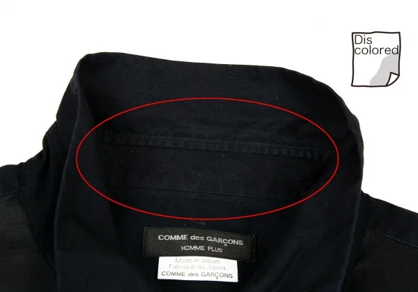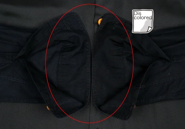 襟裏・袖先・袖裏・後ろ右袖・サイド裾に色褪せ、背中に色褪せと着用シワがあります(画像参照)。その他目立ったシミ、汚れ、ほつれ等ありません。クリーニング済み