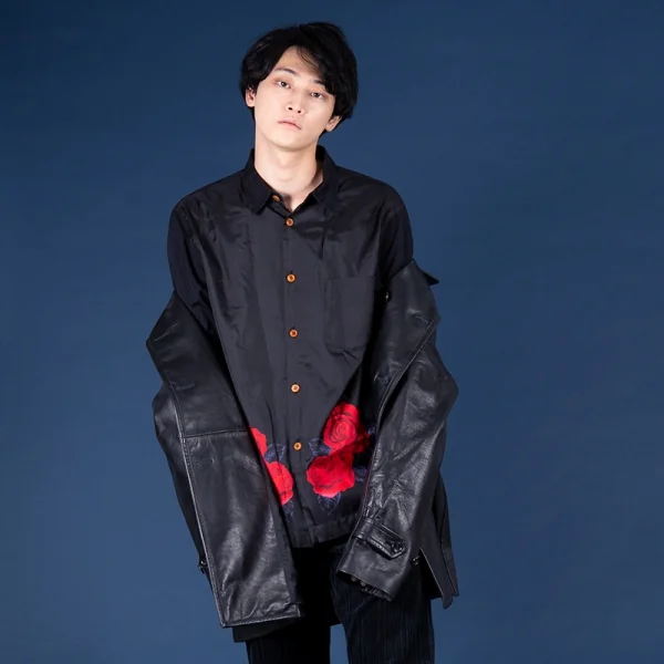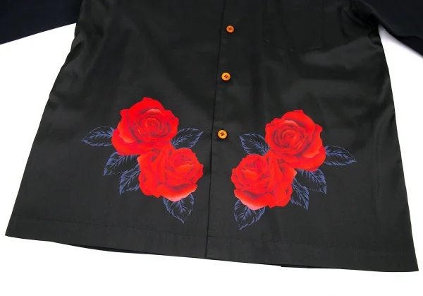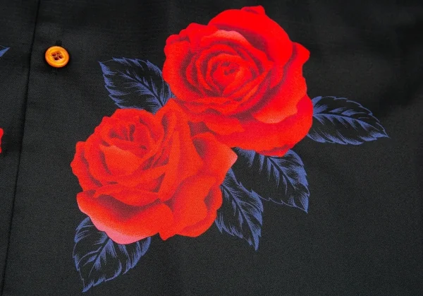 コムデギャルソン オムプリュスCOMME des GARCONS HOMME PLUS ローズプリント切替デザインシャツ 黒L位