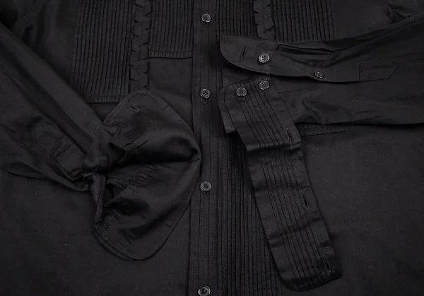 ヨウジヤマモト プールオムYohji Yamamoto POUR HOMME ピンタック装飾カフス着脱デザイン長袖シャツ 黒3