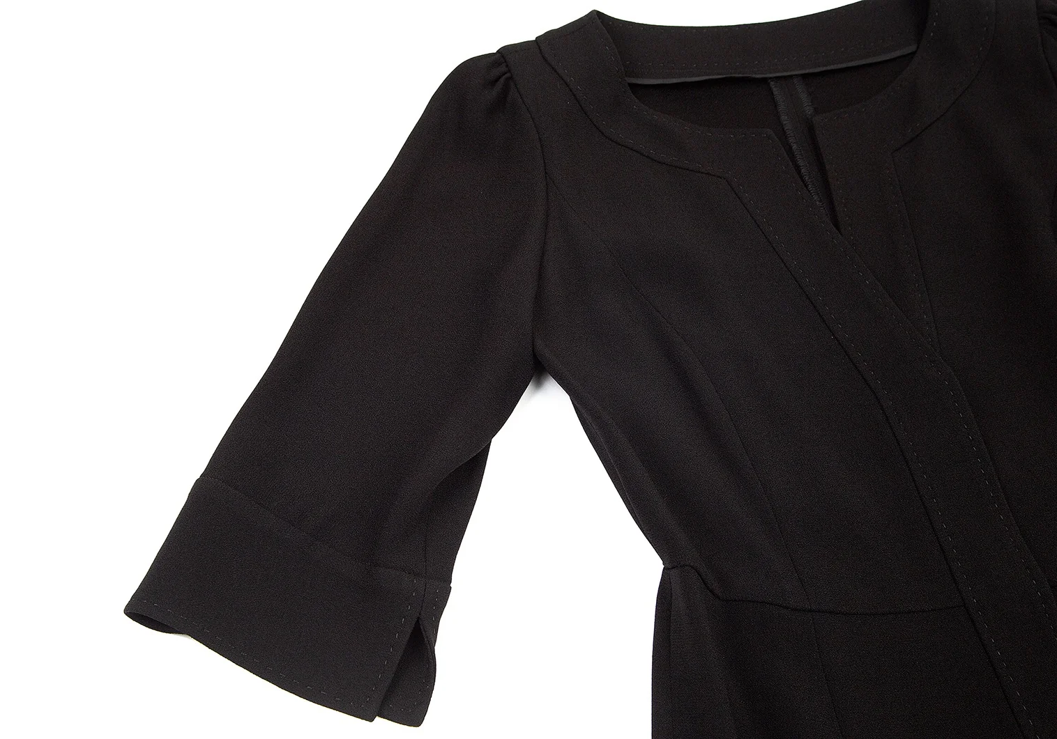 レキップヨシエイナバL'EQUIPE YOSHIE INABA アムンゼン七分袖ノーカラーワンピース 黒38