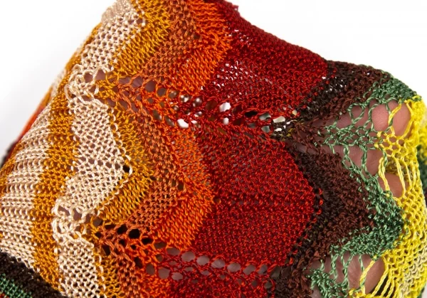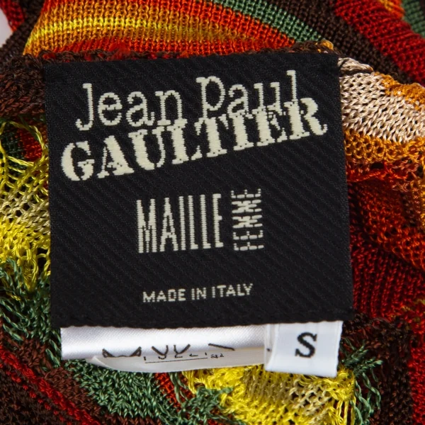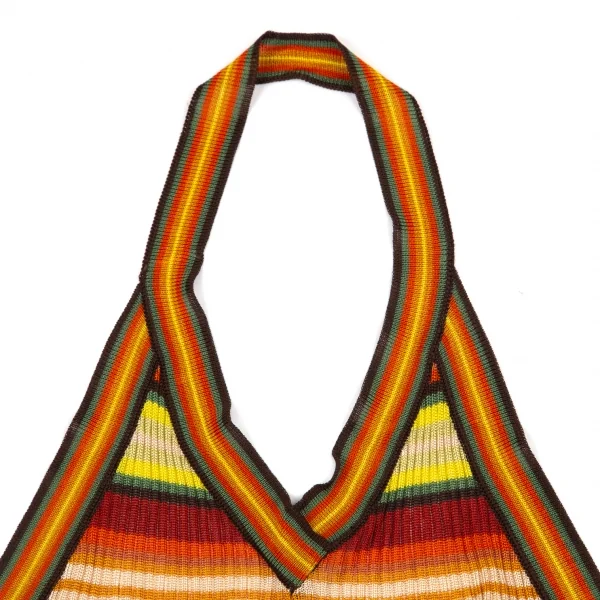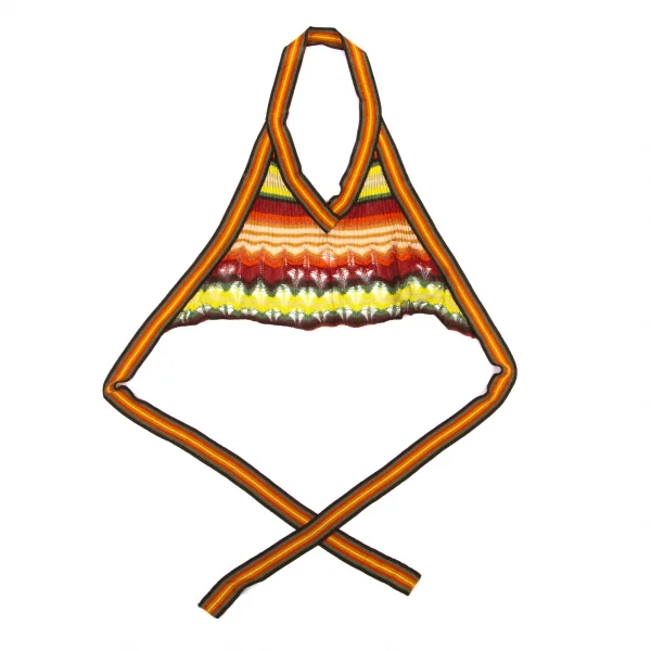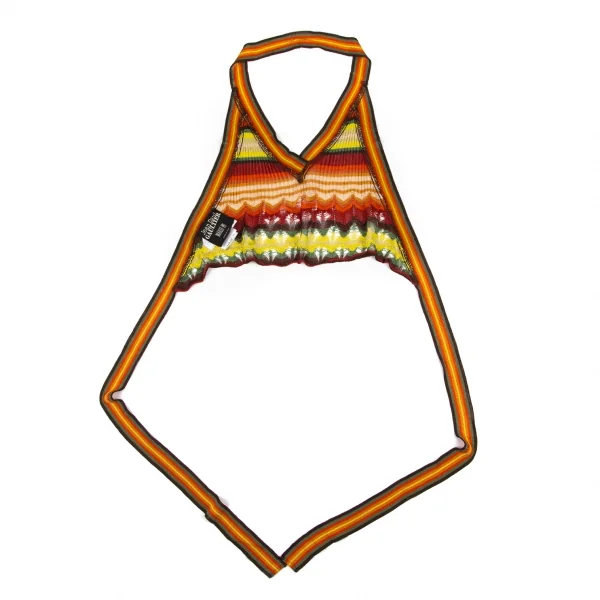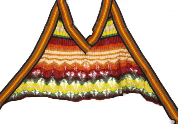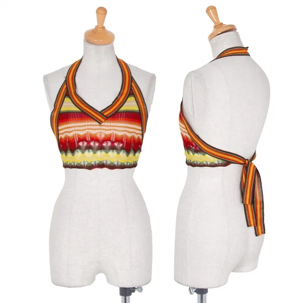 ジャンポールゴルチエ マイユファムJean Paul GAULTIER MAILLE FEMME レース編み替えストライプショート丈ホルターネックトップス マルチS