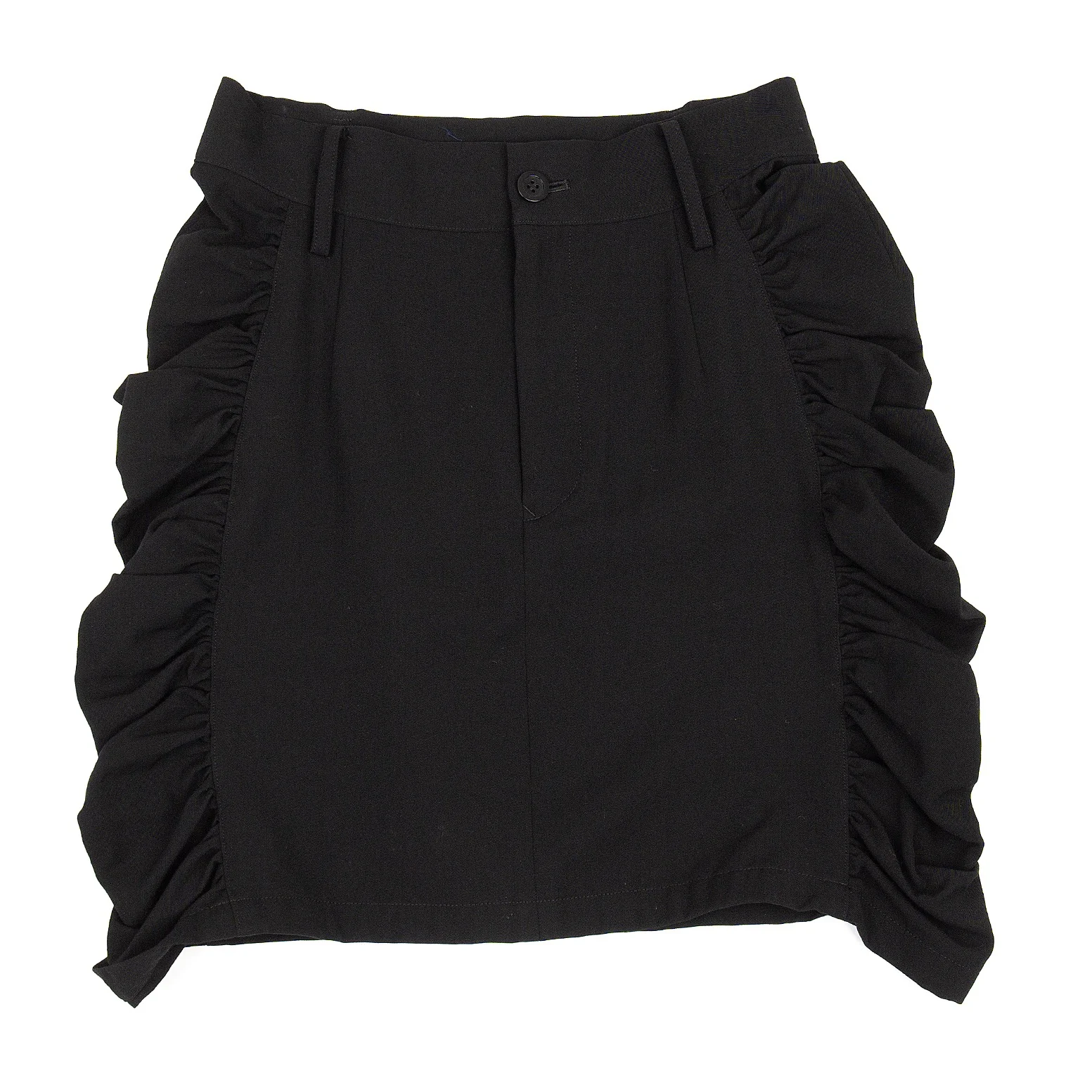 リミフゥLIMI feu ウールコットンギャバサイドギャザー切替ミニスカート 黒S