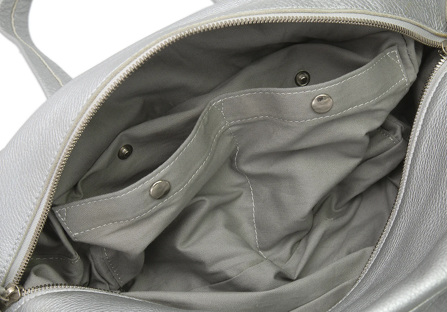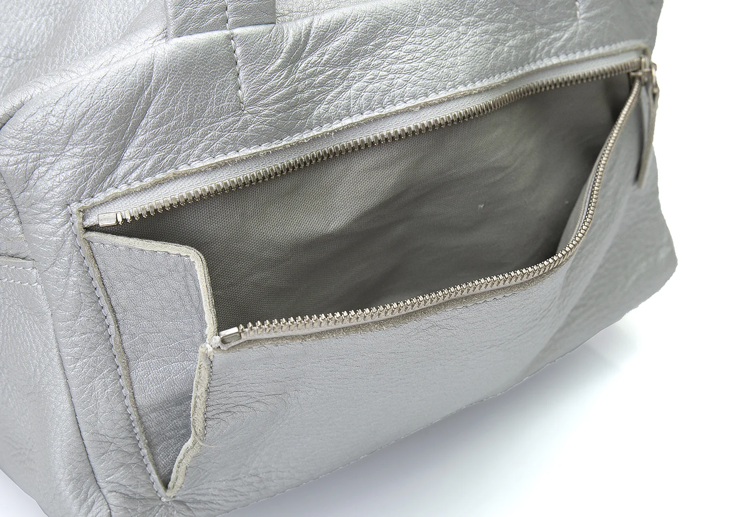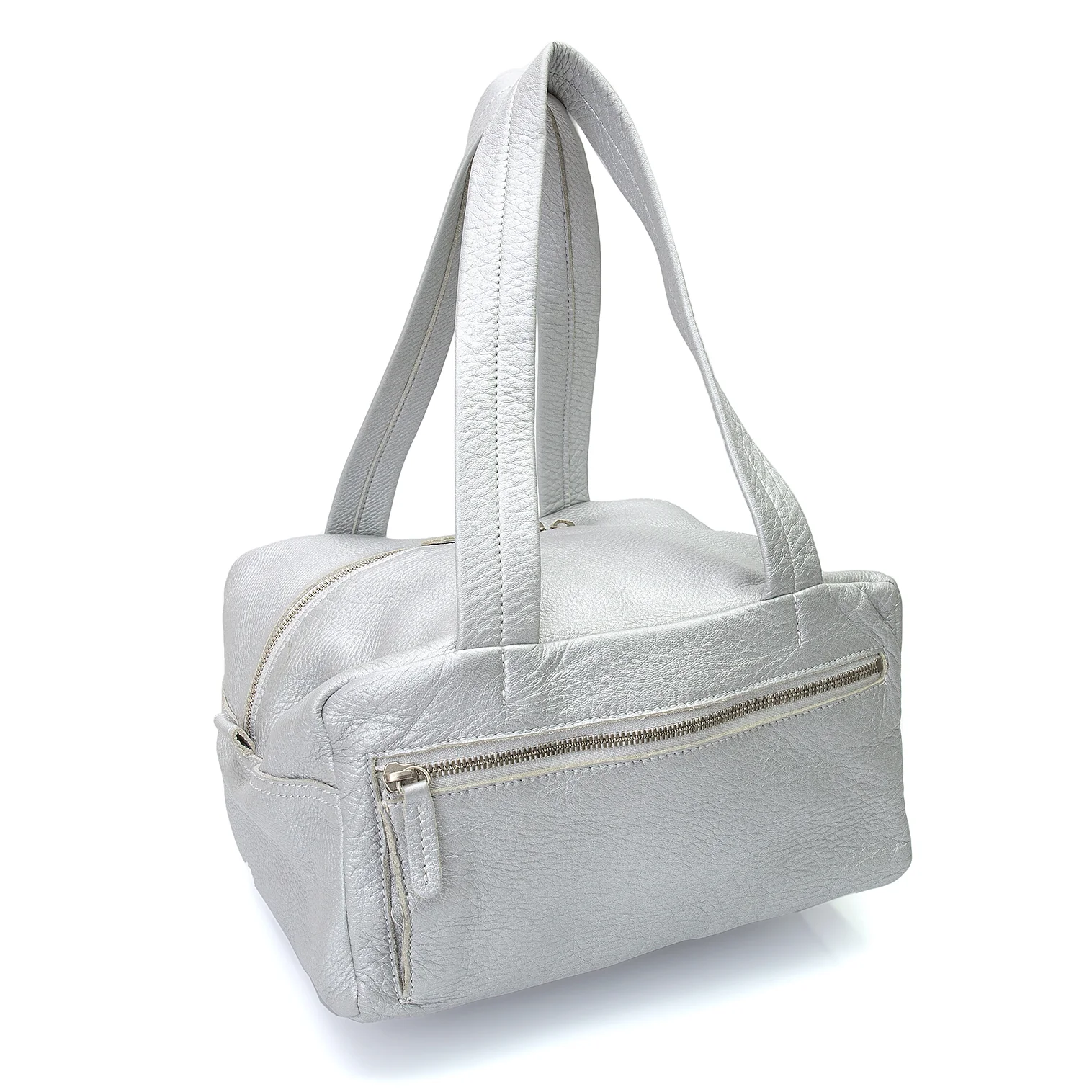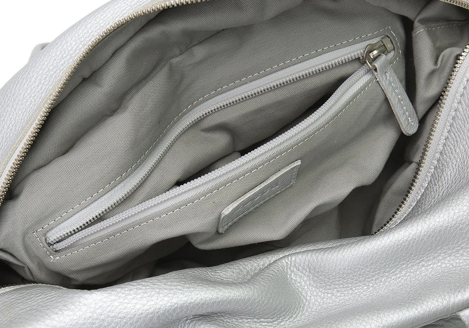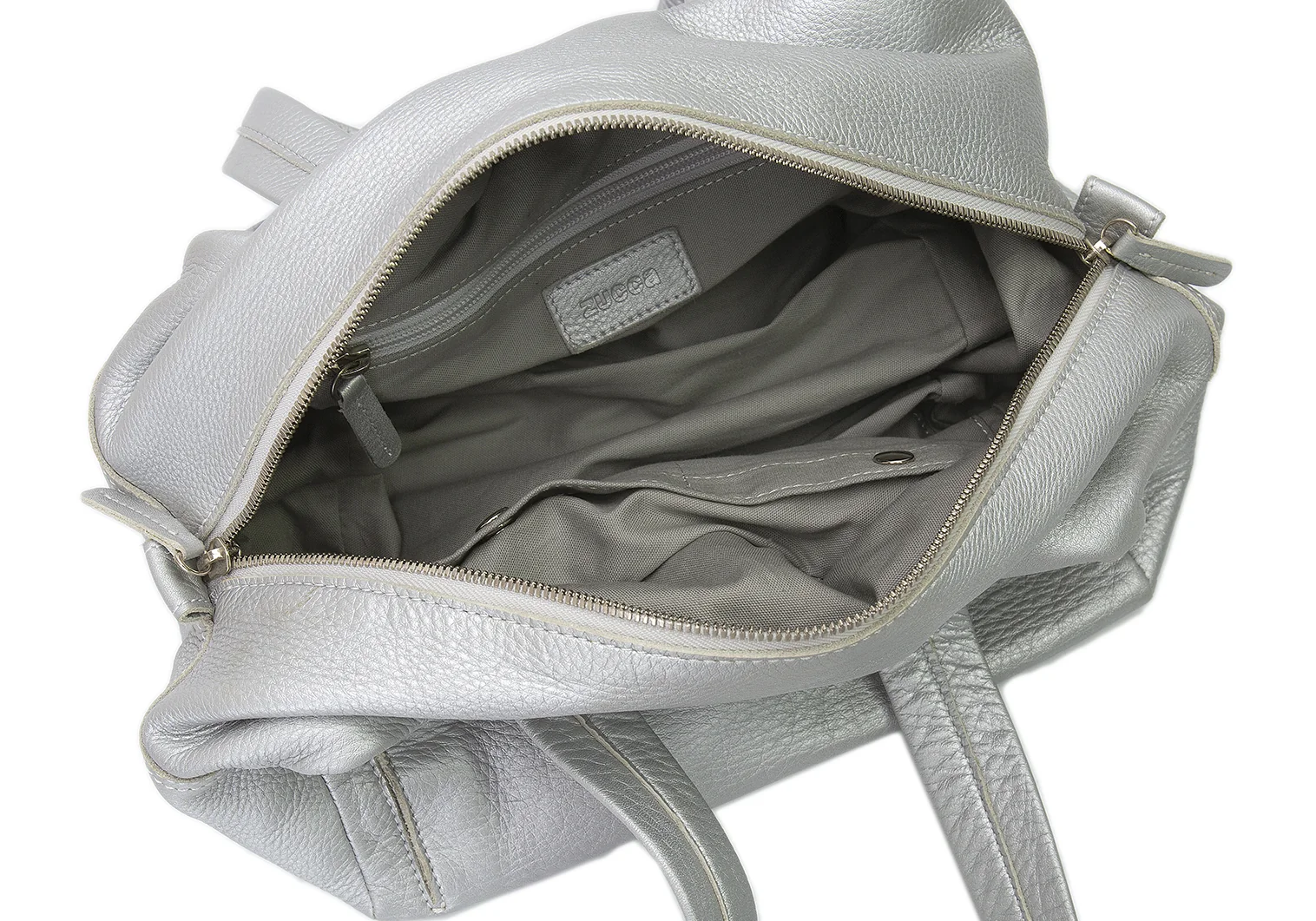 ズッカzucca フォイルシュリンクレザーハンドバッグ シルバー
