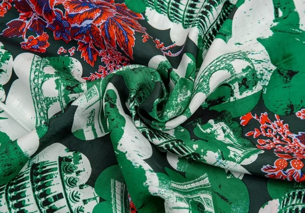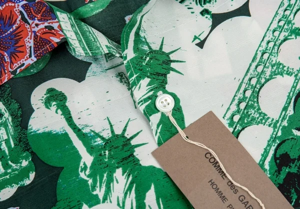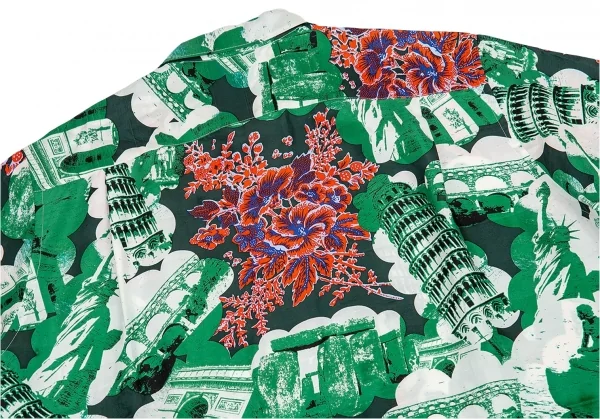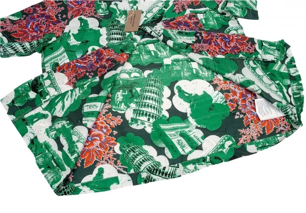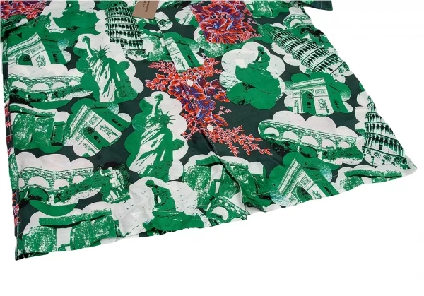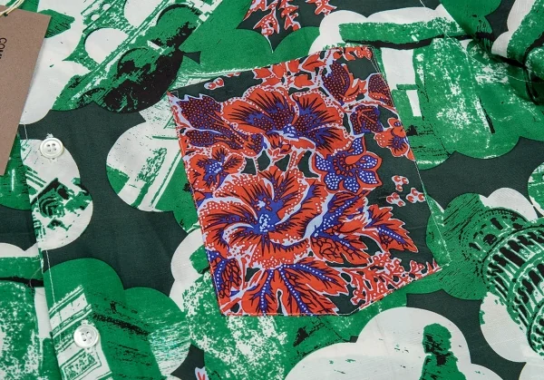 コムデギャルソン オムプリュスCOMME des GARCONS HOMME PLUS グラフィックプリント半袖シルクシャツ 白緑他M位