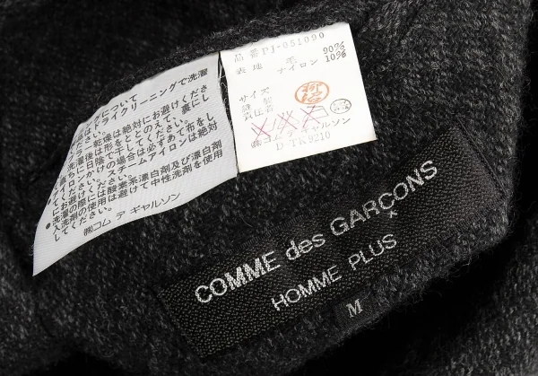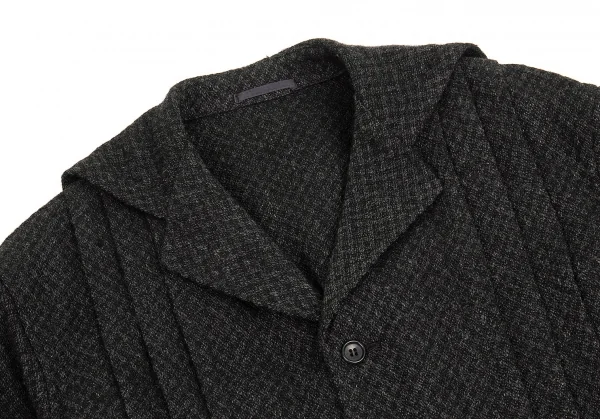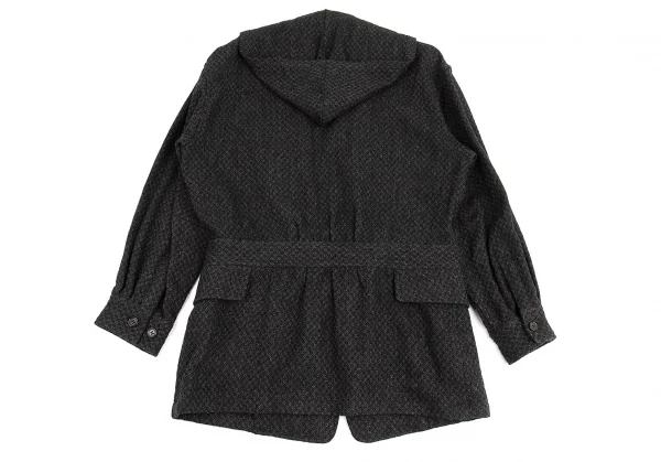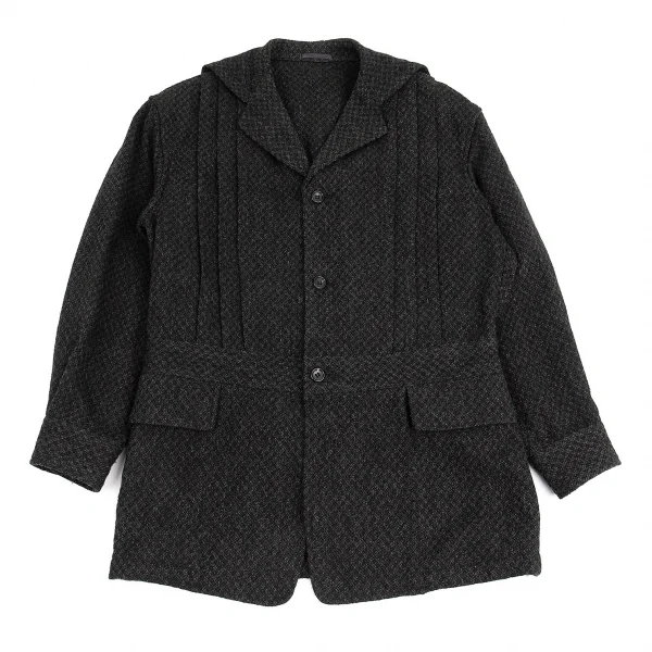 コムデギャルソン オムプリュスCOMME des GARCONS HOMME PLUS ツイードプリーツフードジャケット グレー黒M
