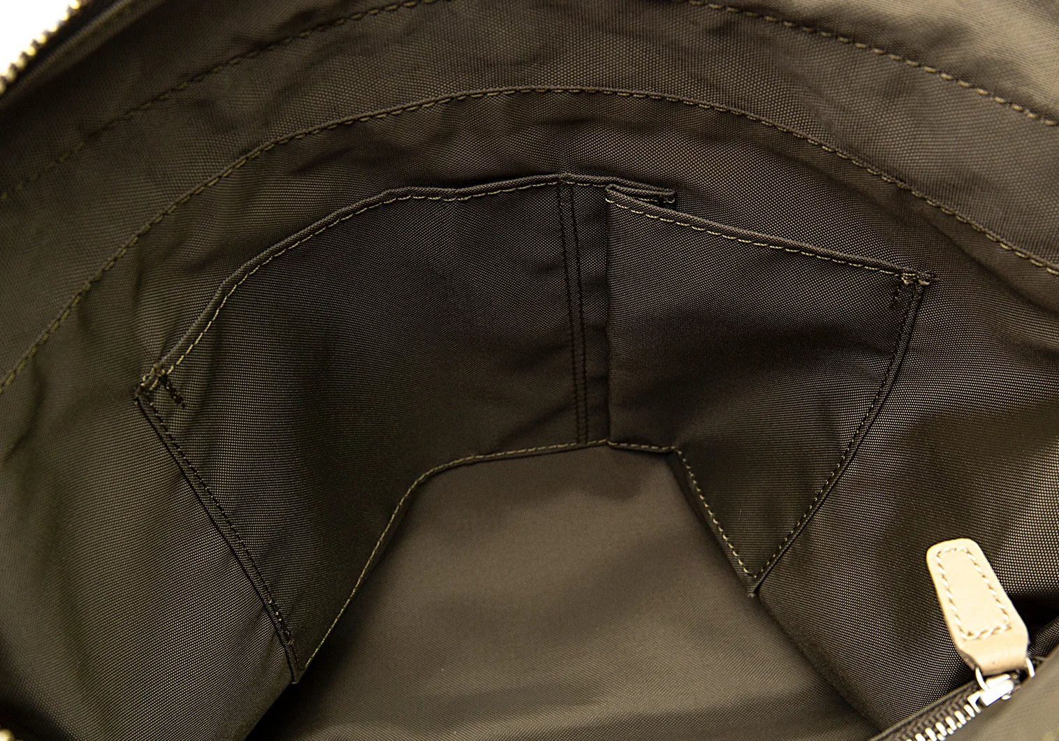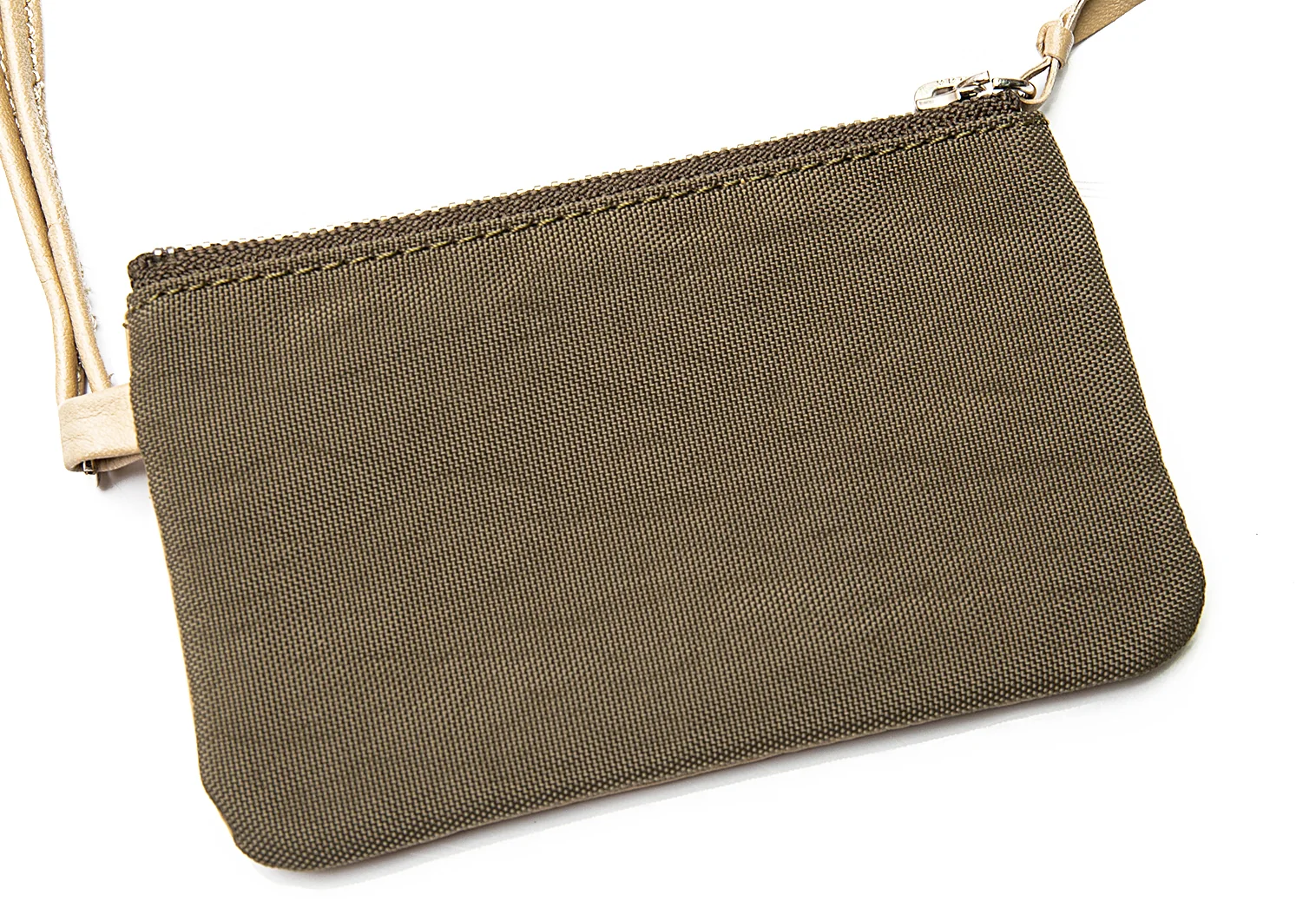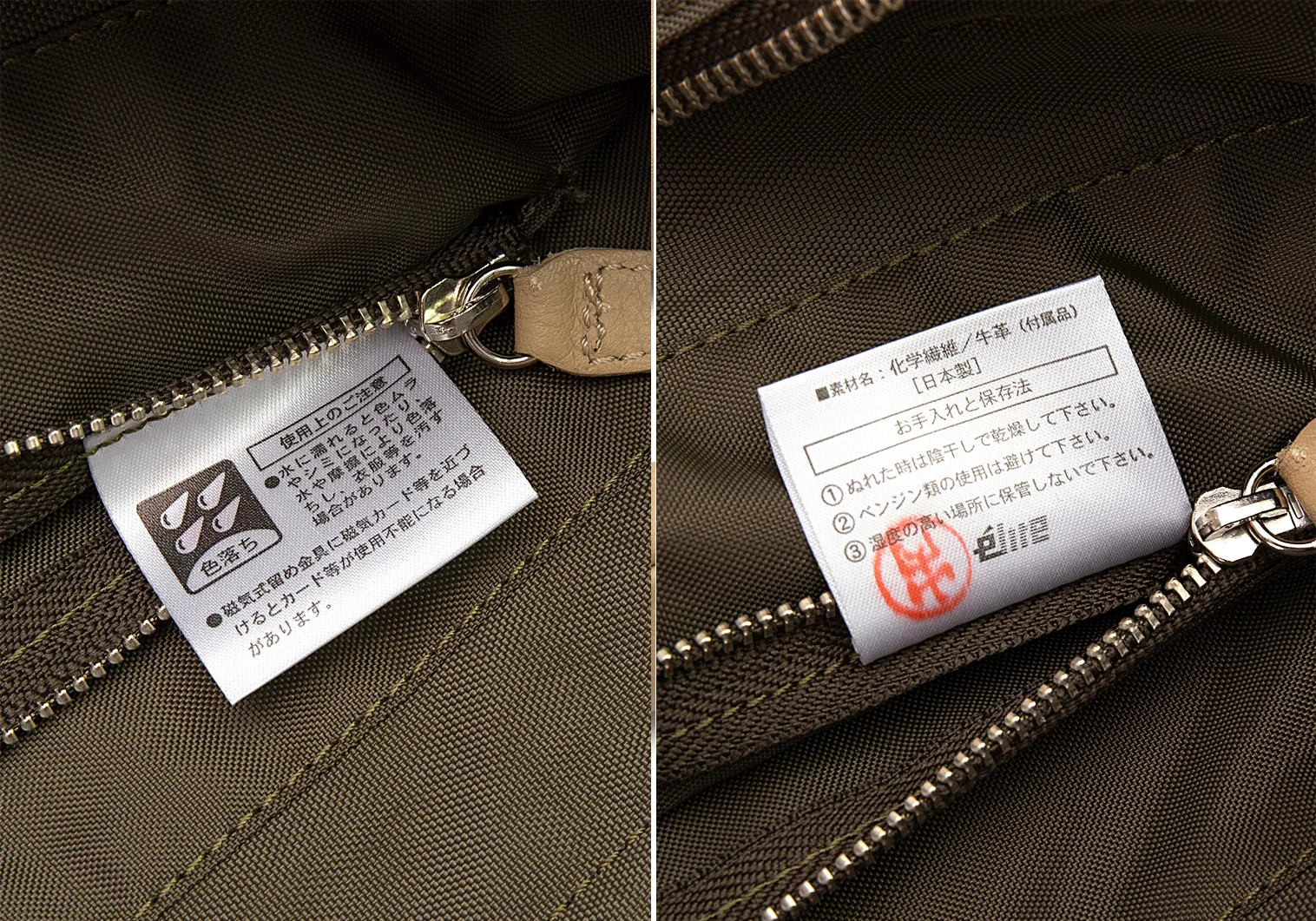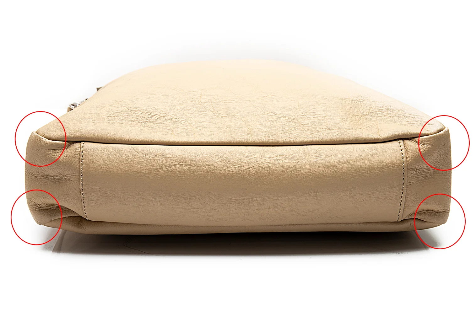 ポーチが付属します。外側ジップポケット1つ、内側ジップポケット1つ、オープンポケット2つあります。表面に点汚れ、角にスレと薄汚れがあります(画像参照)。その他目立った傷や汚れなどなくいい状態です。