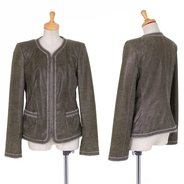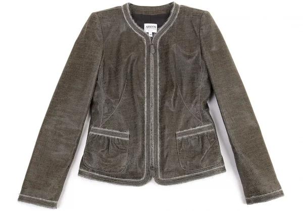 アルマーニ コレッツィオーニARMANI COLLEZIONI ラムレザーダブルジップブルゾン チャコール42