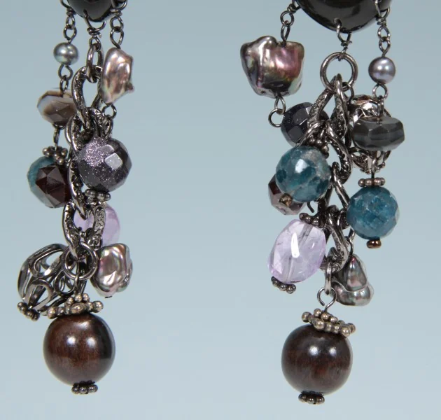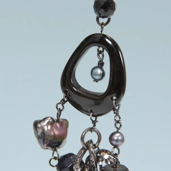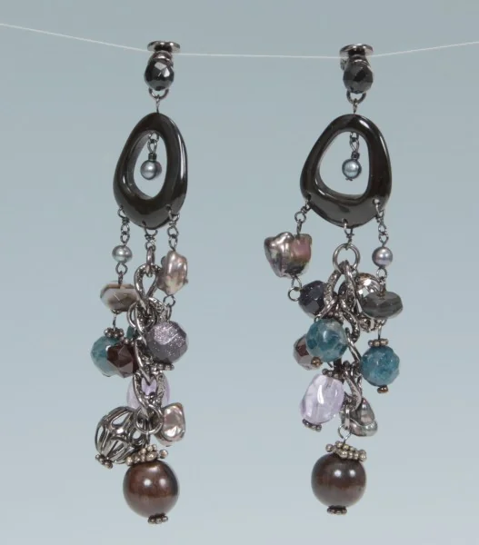 ヴァンドーム ブティック VENDOME BOUTIQUE イヤリング 黒青系全長 8.5cm