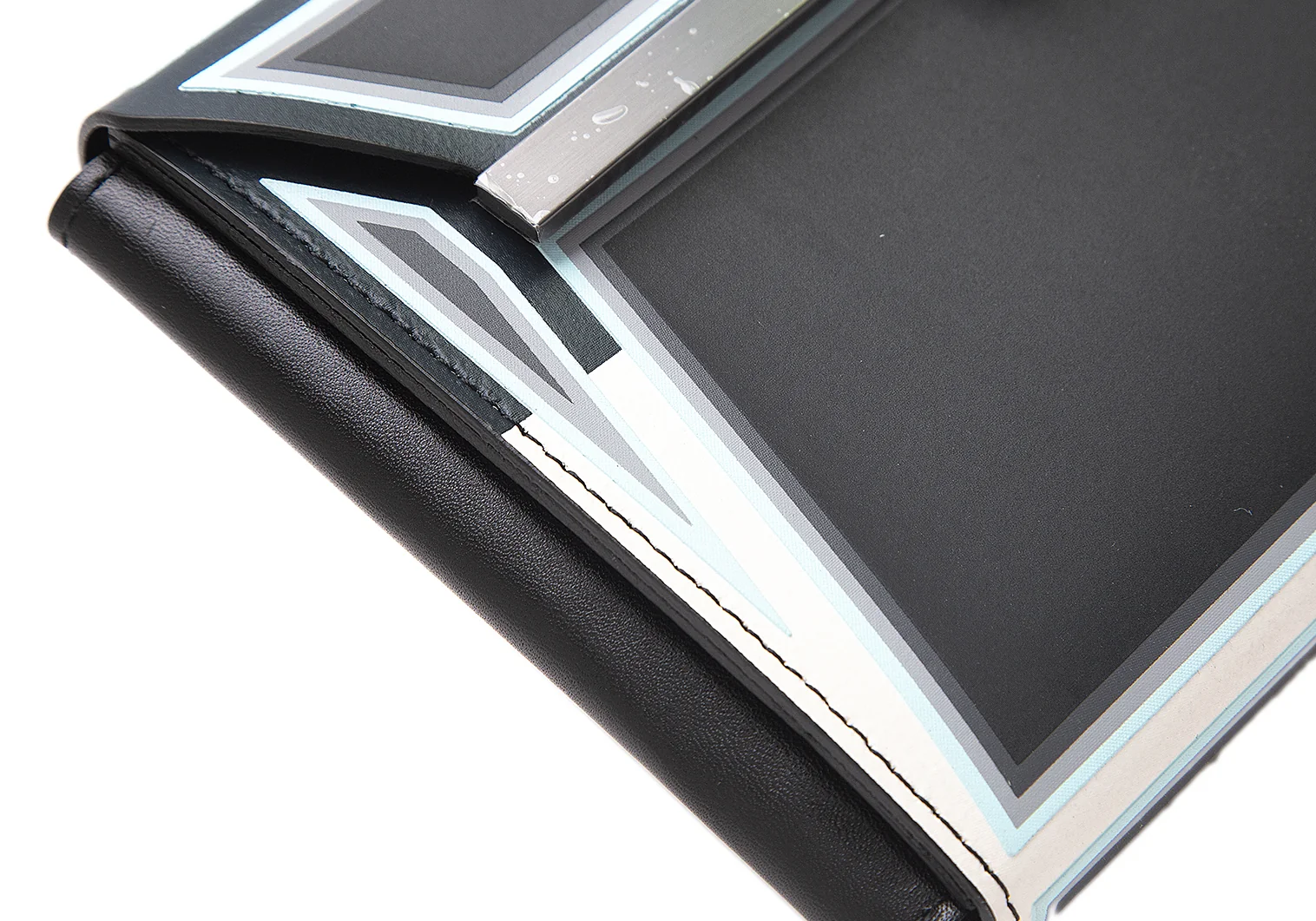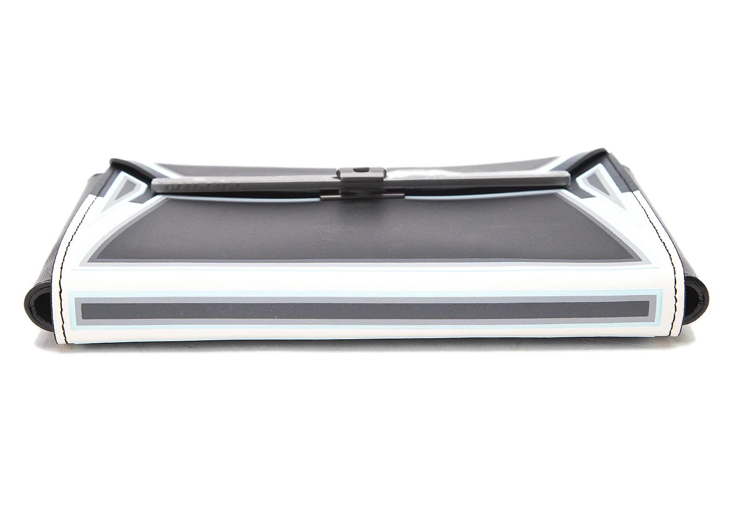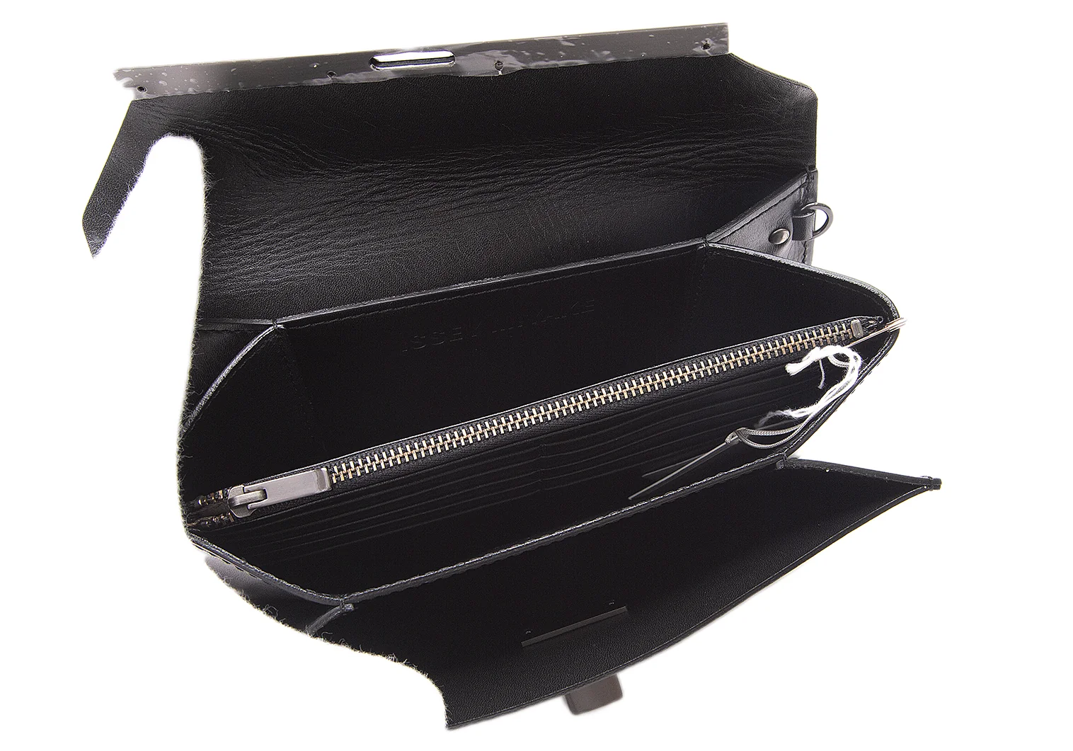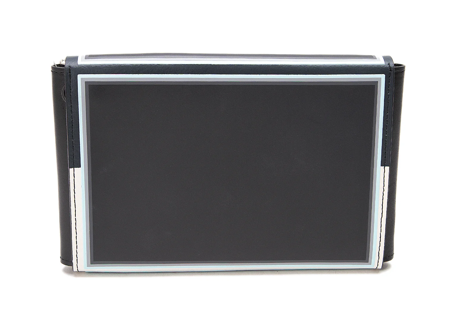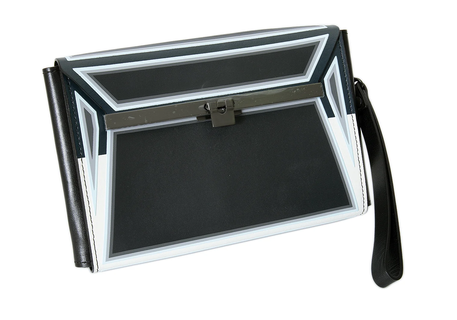 イッセイミヤケISSEY MIYAKE GUSTON ガストン ジオメトリックラインプリントレザーポーチ 黒ライトブルー他