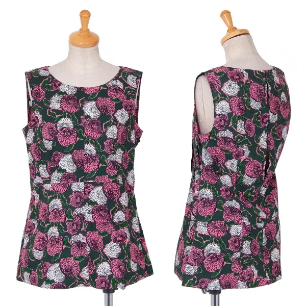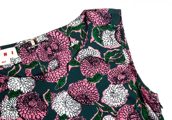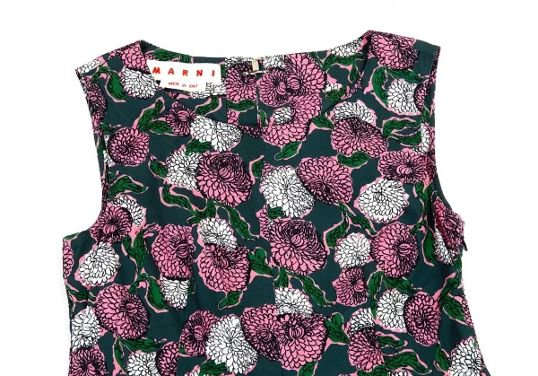 マルニMARNI フラワープリントノースリーブブラウス 深緑ピンク他40