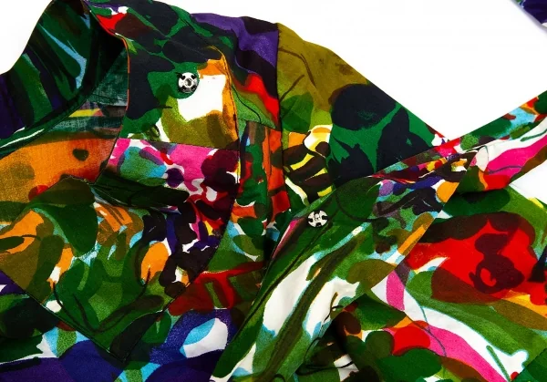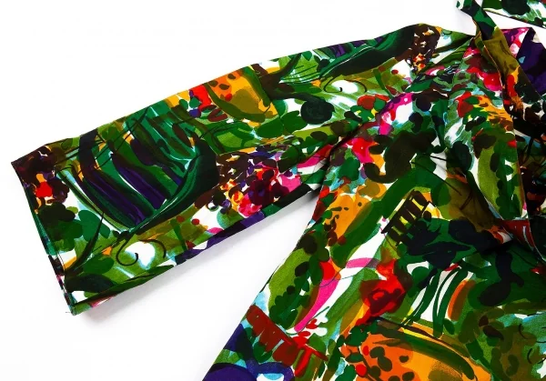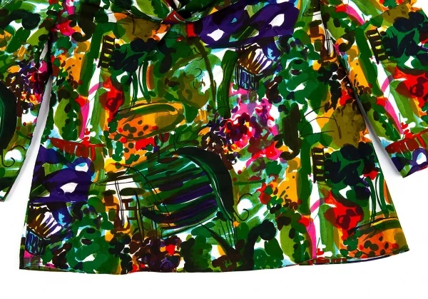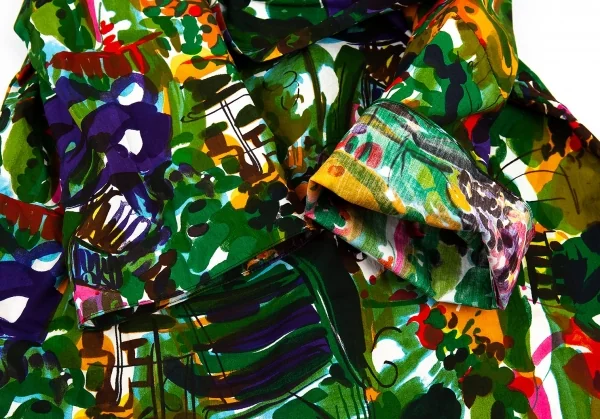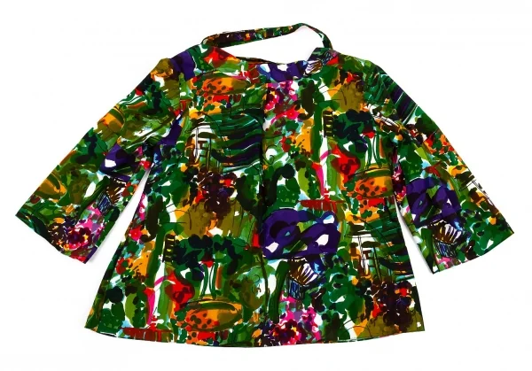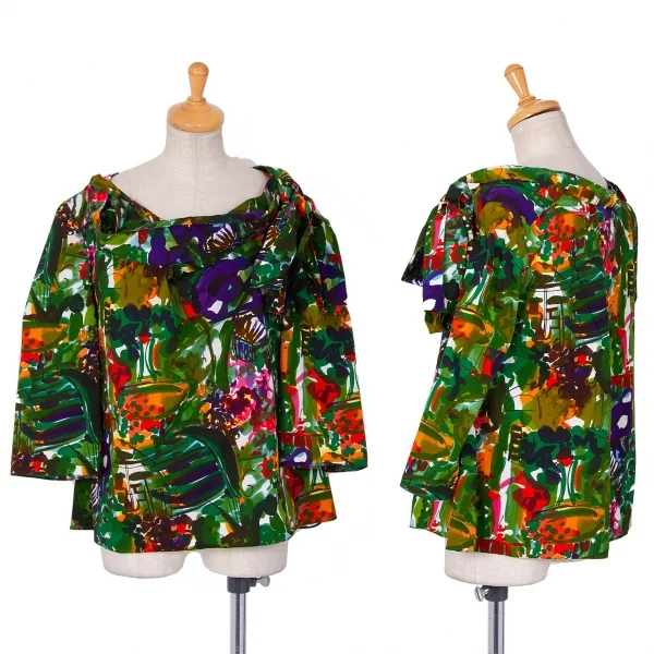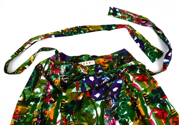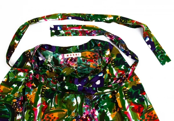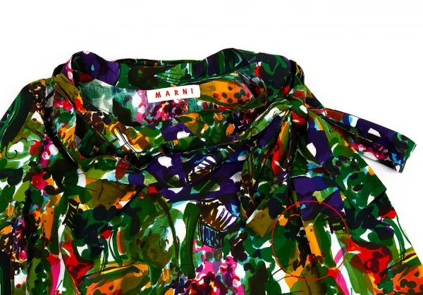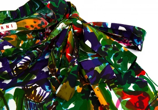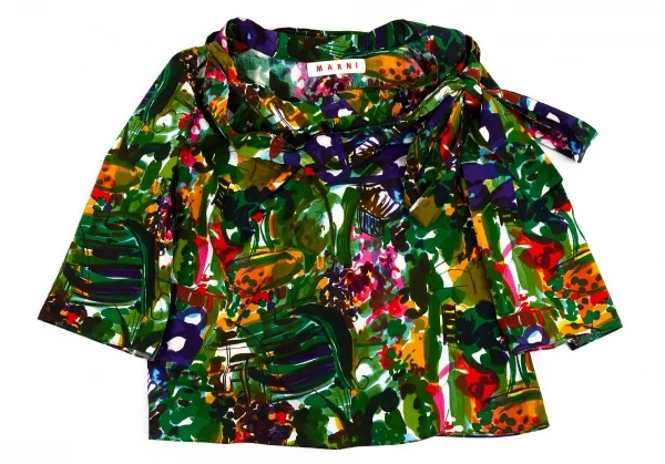 マルニMARNI ボタニカルドローイングプリントストール付きブラウス 緑マルチ38