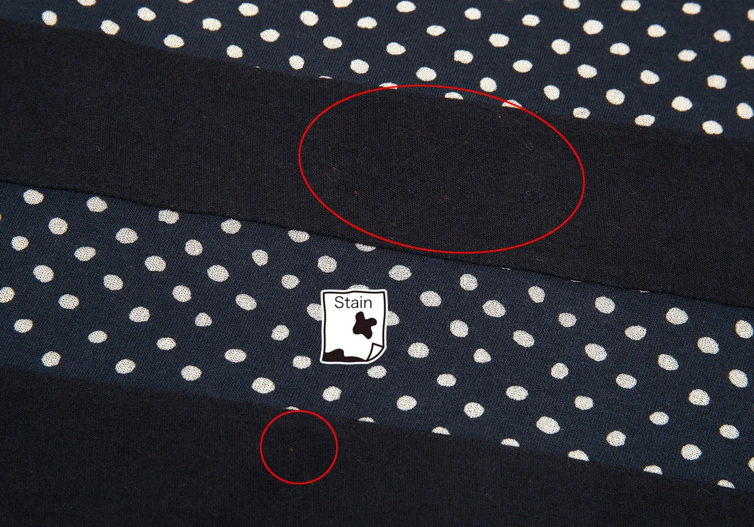 全体的に色褪せており、前身頃にシミがあります(画像参照)。その他目立ったシミ、汚れ、ほつれ等ありません。クリーニング済み
