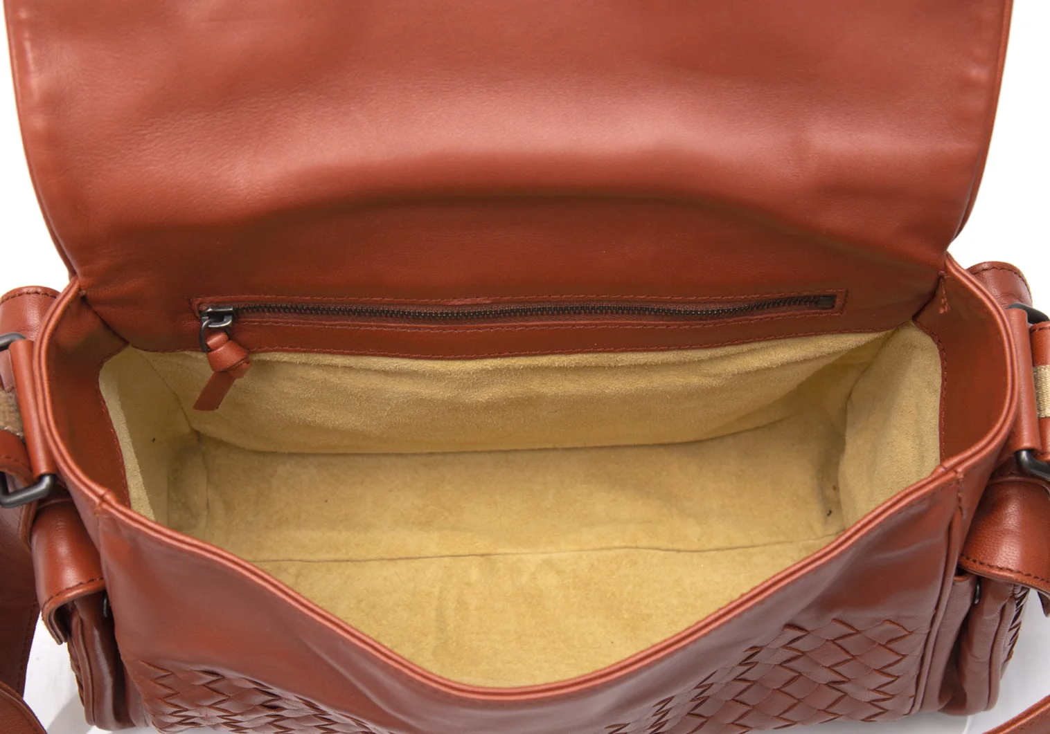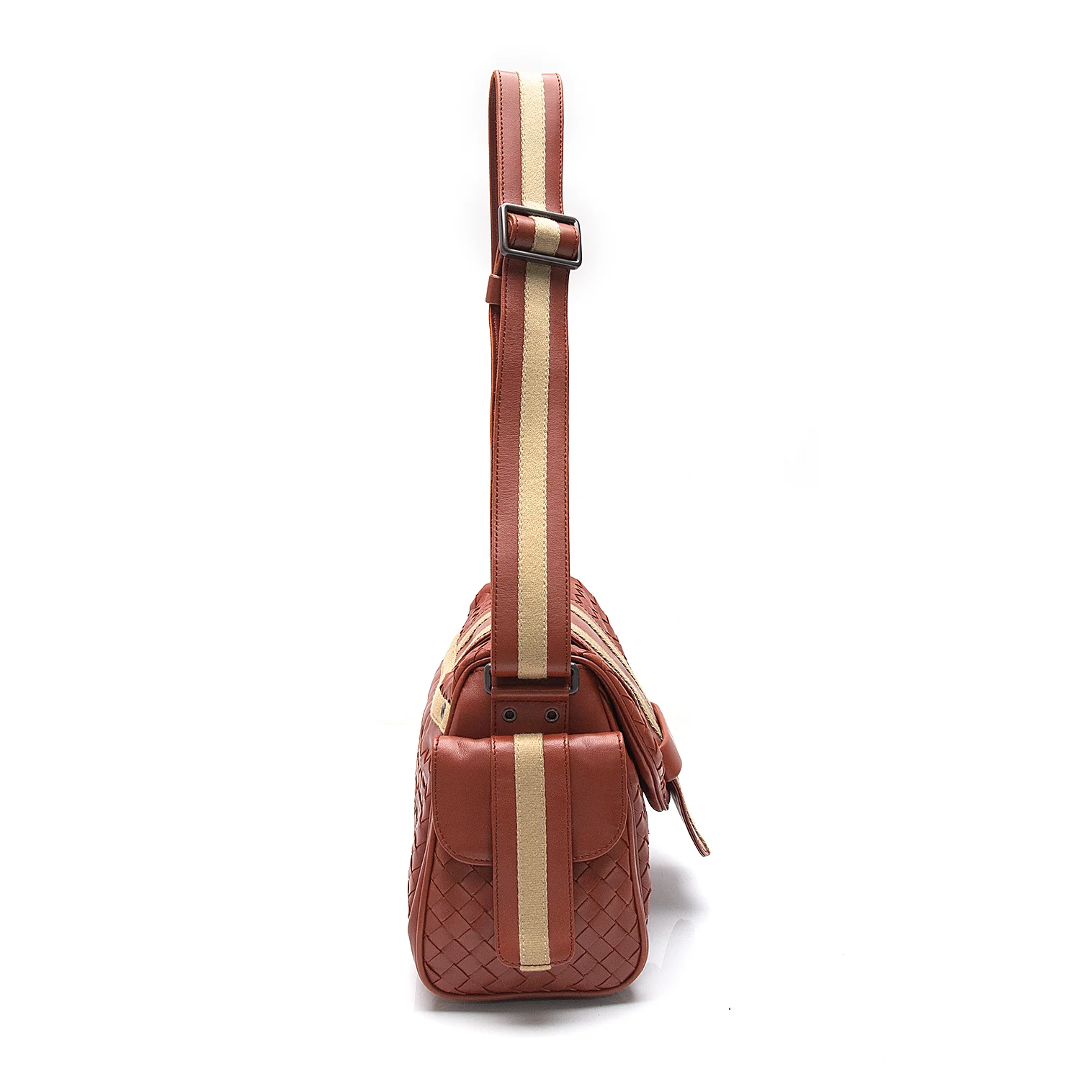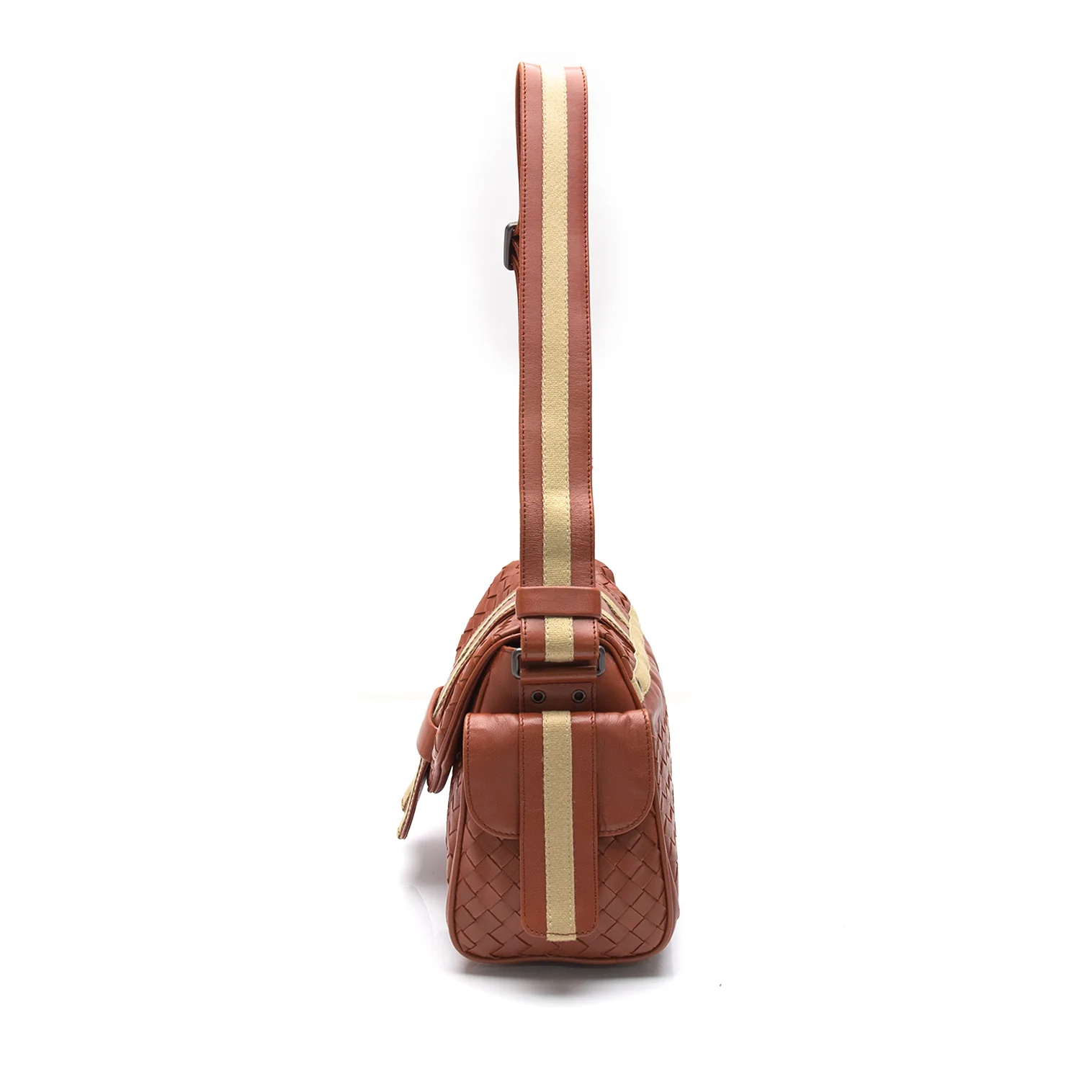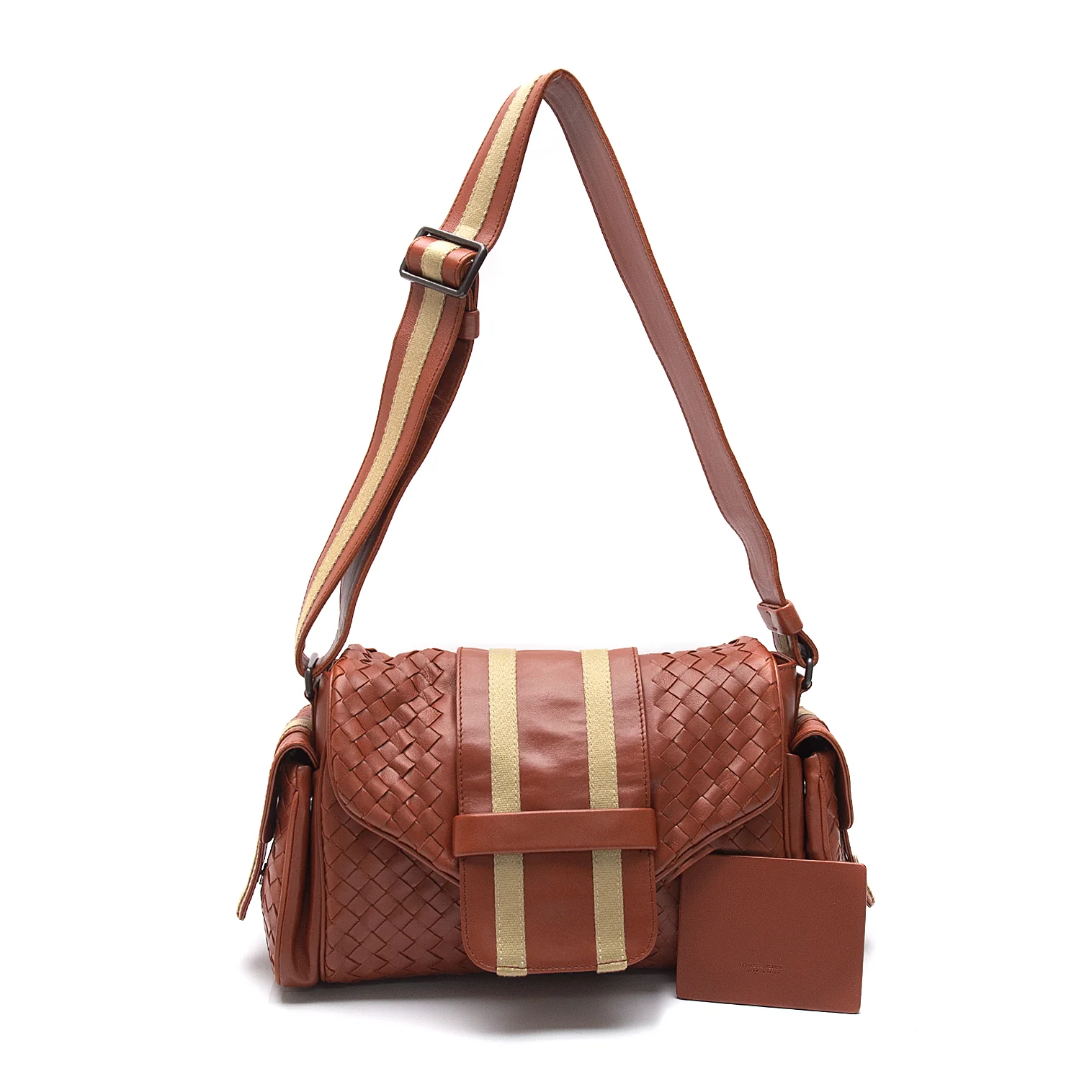 ボッテガヴェネタBOTTEGA VENETA イントレチャートショルダーバッグ コンパクトミラー付 茶 キャメル