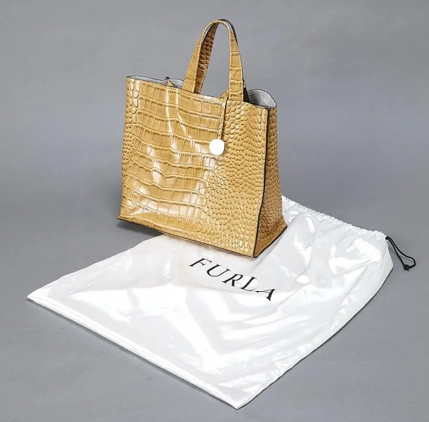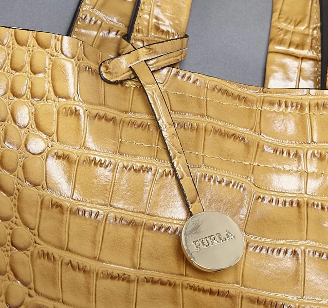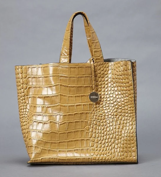 フルラFURLA 型押しレザーハンドバック ベージュ