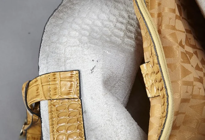 表面は目立ったシミ、汚れ、キズ等なくいい状態です。裏地は薄汚れ有りです(写真参照)
