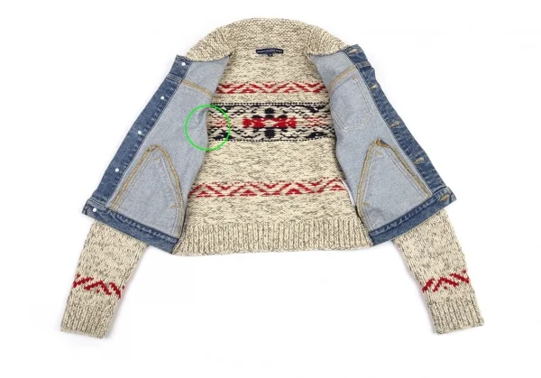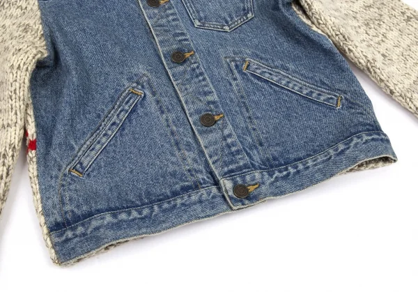 ラルフローレンスポーツRALPH LAUREN SPORT カウチンニットフロント切替デニムジャケット インディゴベージュM